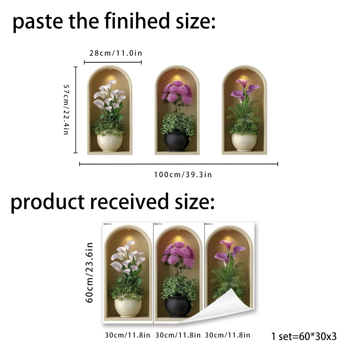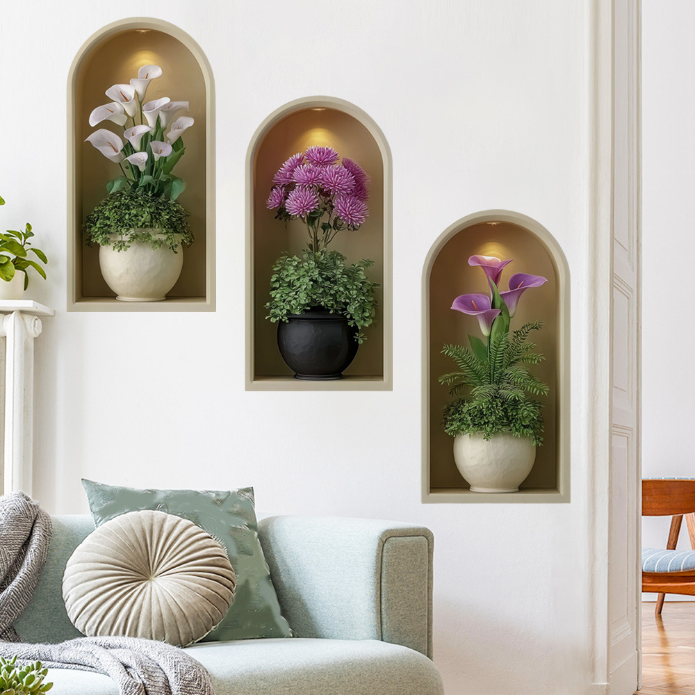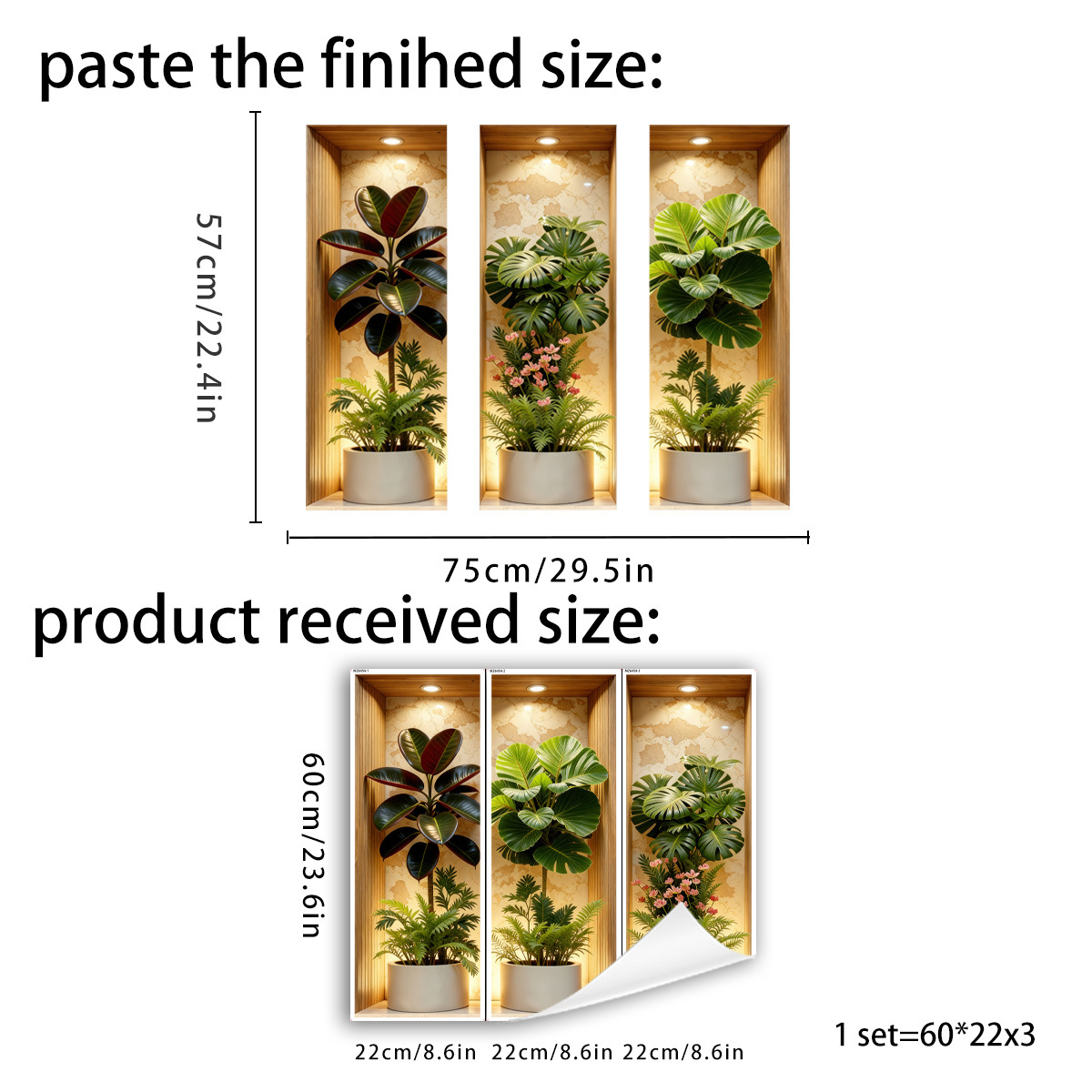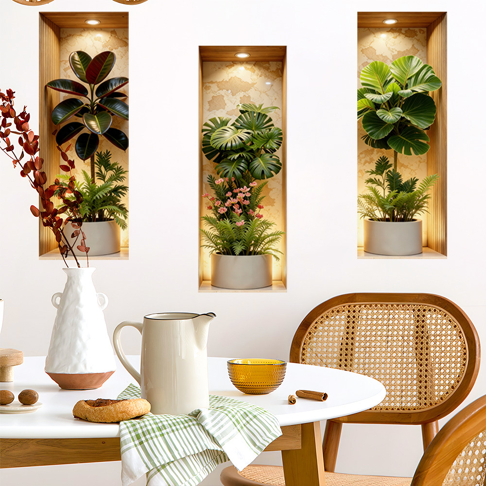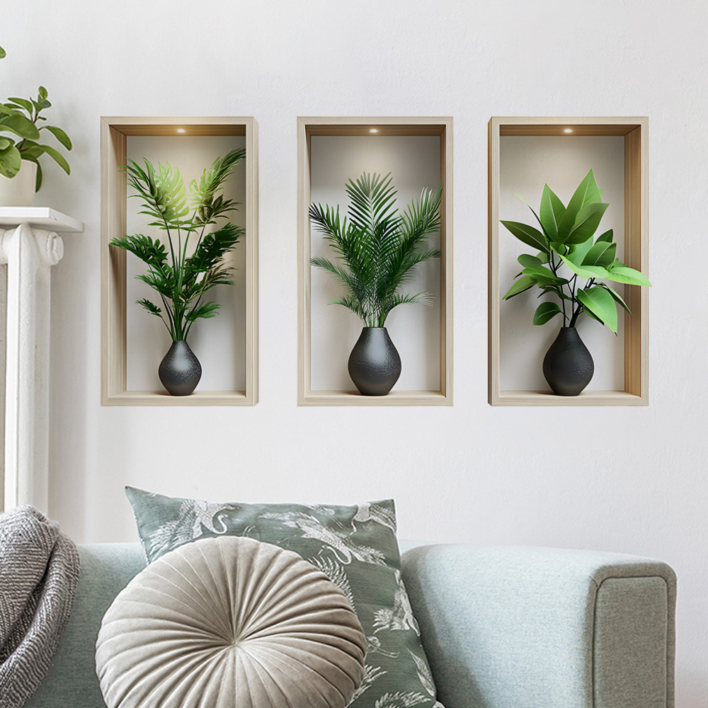 3 차원 3D 벽 스티커 식물 화분 벽 스티커 배경 벽 거실 장식 벽 스티커 자체 접착 벽 스티커 도매스토어 가기