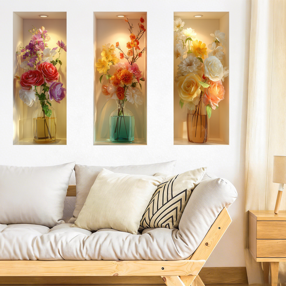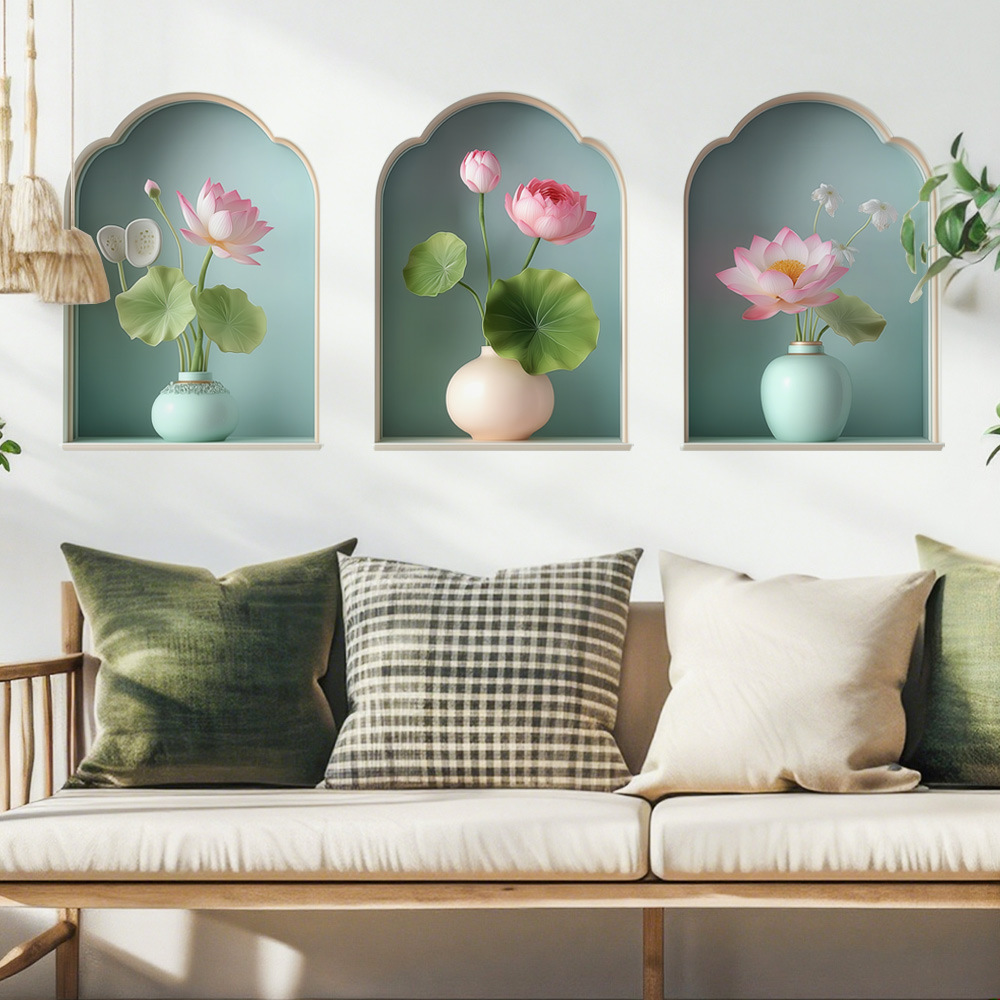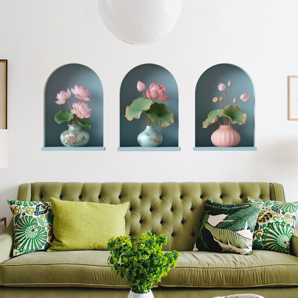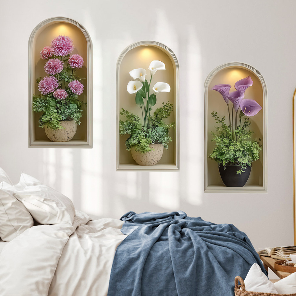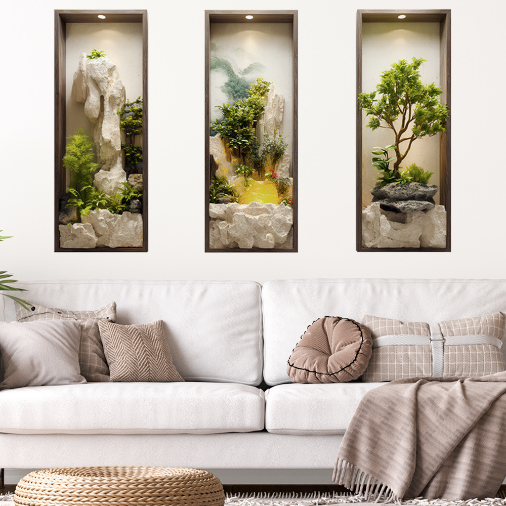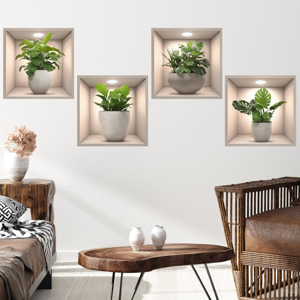 3 차원 3D 벽 스티커 식물 화분 벽 스티커 배경 벽 거실 장식 벽 스티커 자체 접착 벽 스티커 도매스토어 가기