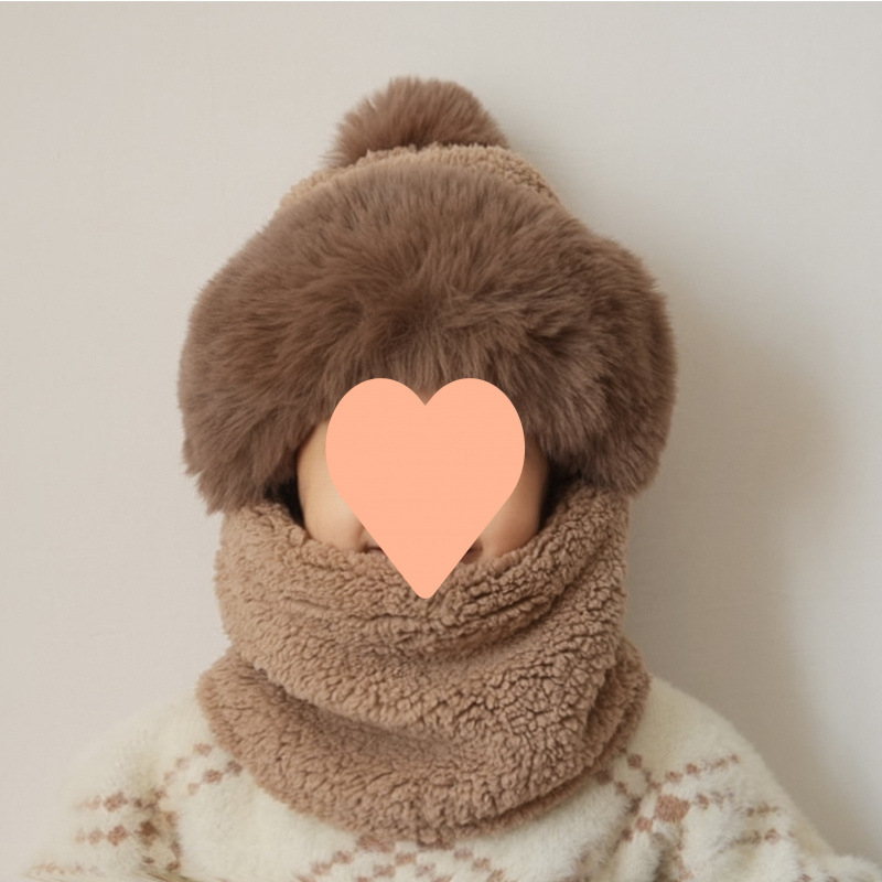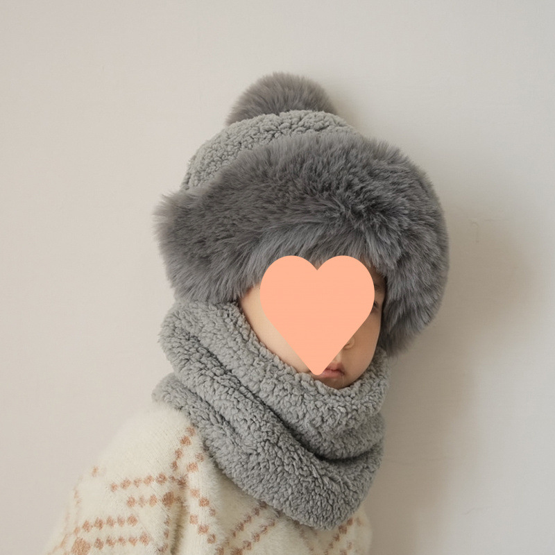 어린이 모자 가을과 겨울 2024 새로운 소년과 소녀 스카프 통합 아기 따뜻한 목 귀여운 귀 보호 모자스토어 가기