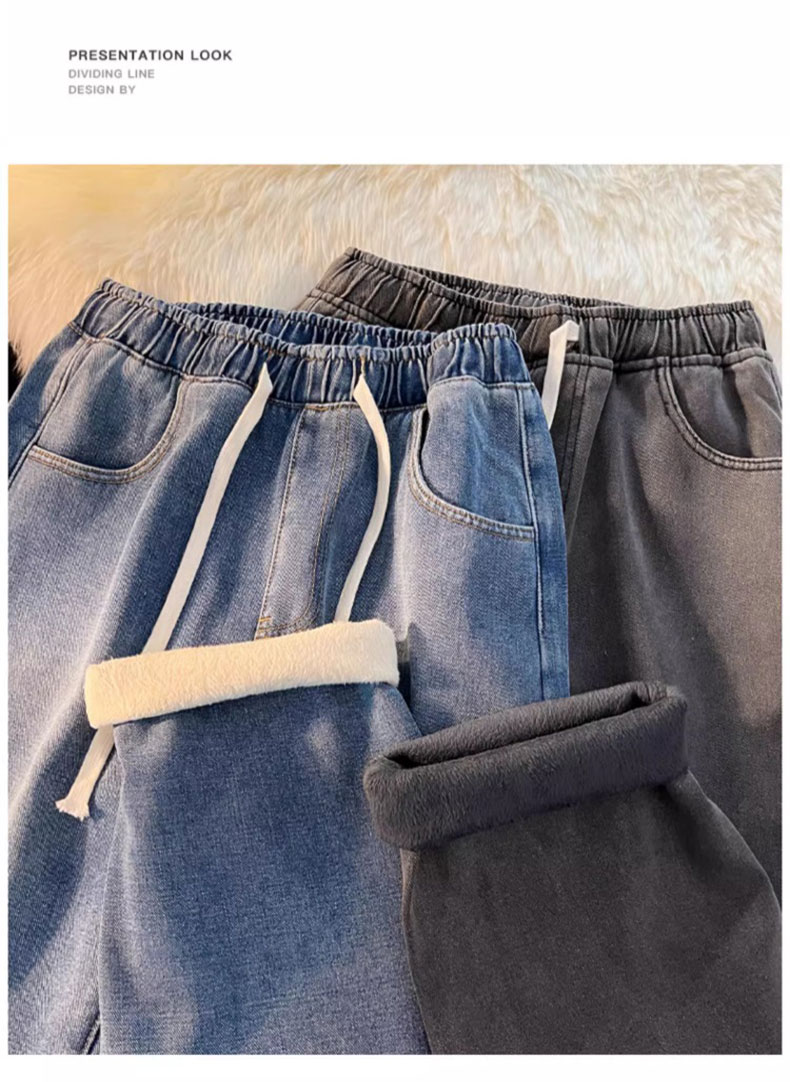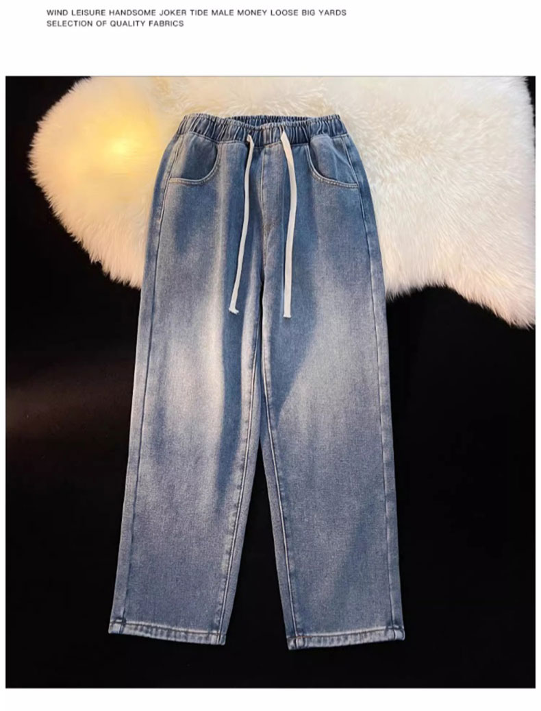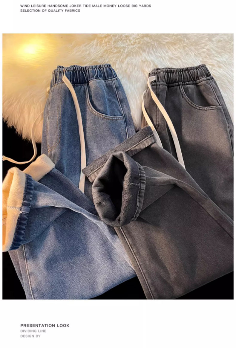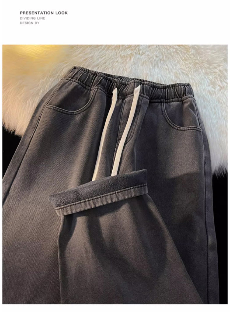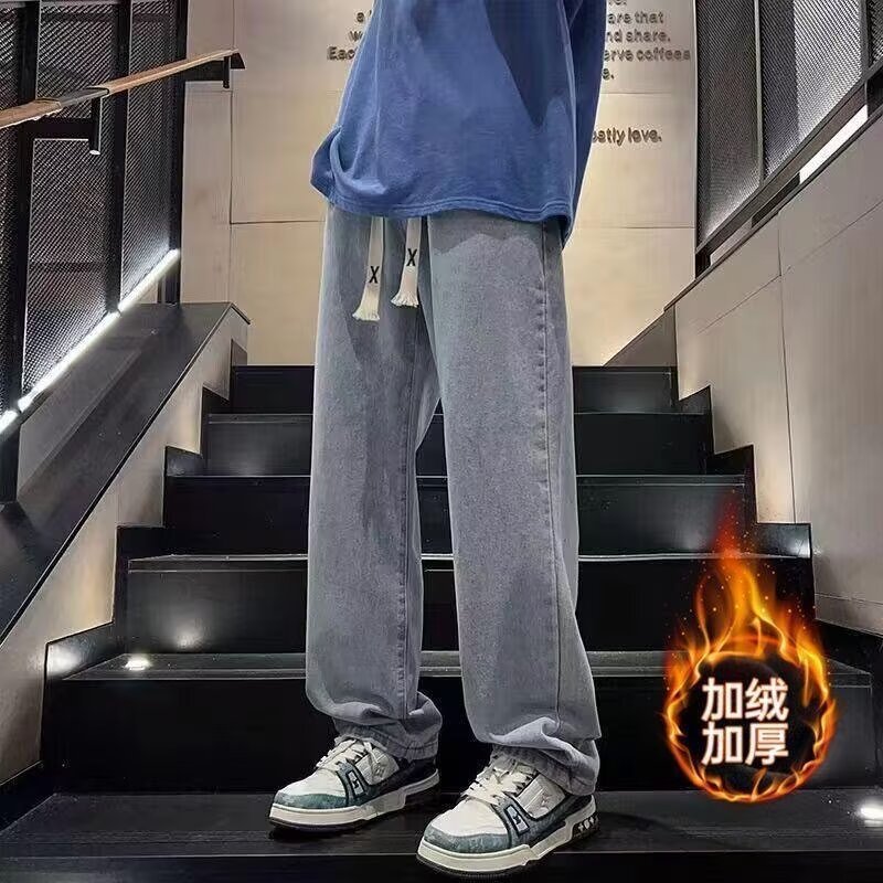 남자 기모 청바지 남자 가을 겨울 두꺼운 따뜻한 미국 바지 남자 하이 스트리트 바이브 느슨한 스트레이트 바지스토어 가기