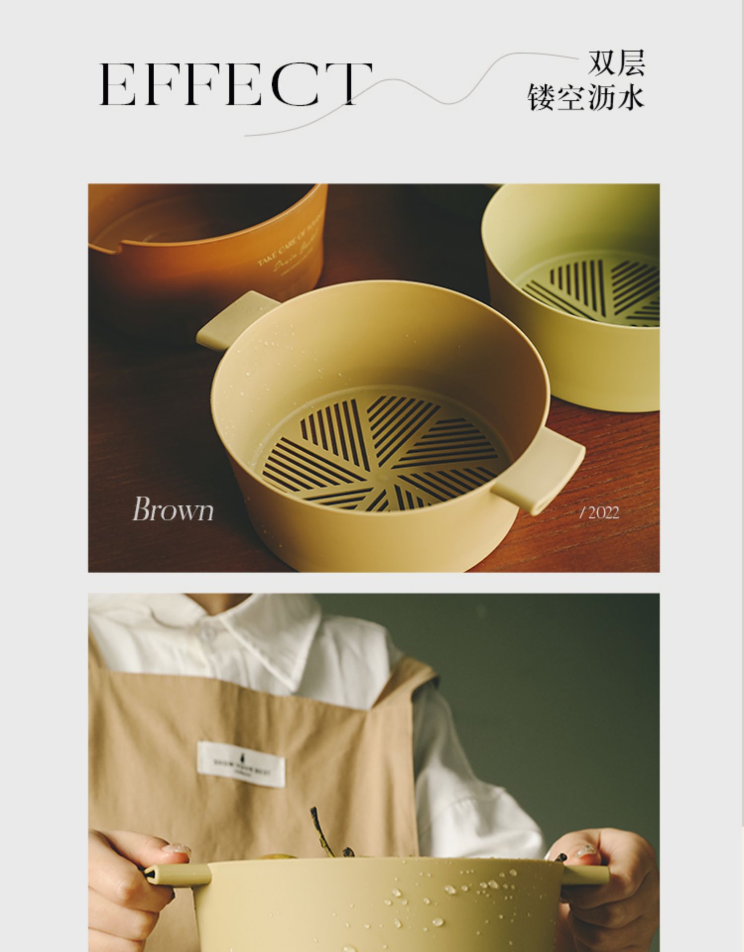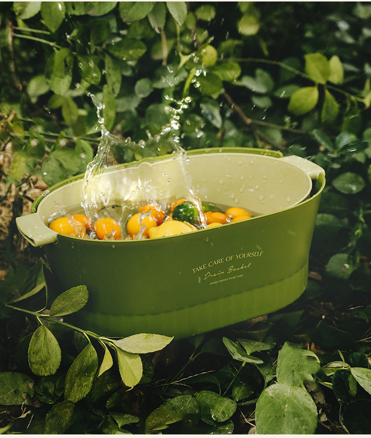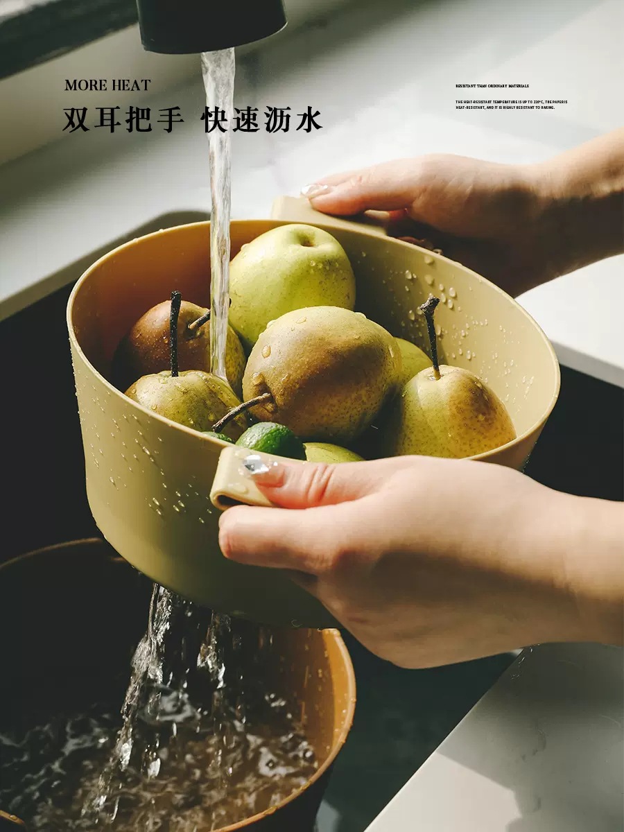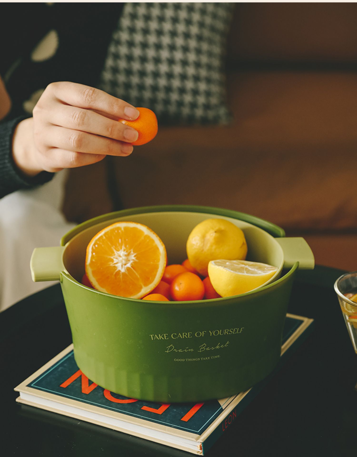 새로운 북유럽 인 스타일 주방 용품 더블 레이어 과일 및 야채 배수 바구니 캔디 컬러 필터 청소 바구니 도매 세척 바구니