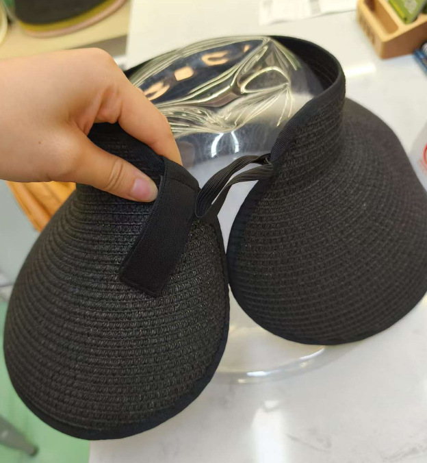 여성용 태양 모자 여름 포니 테일 접이식 밀짚 비치 모자 와이드 브림 롤업 태양 모자 빈 모자