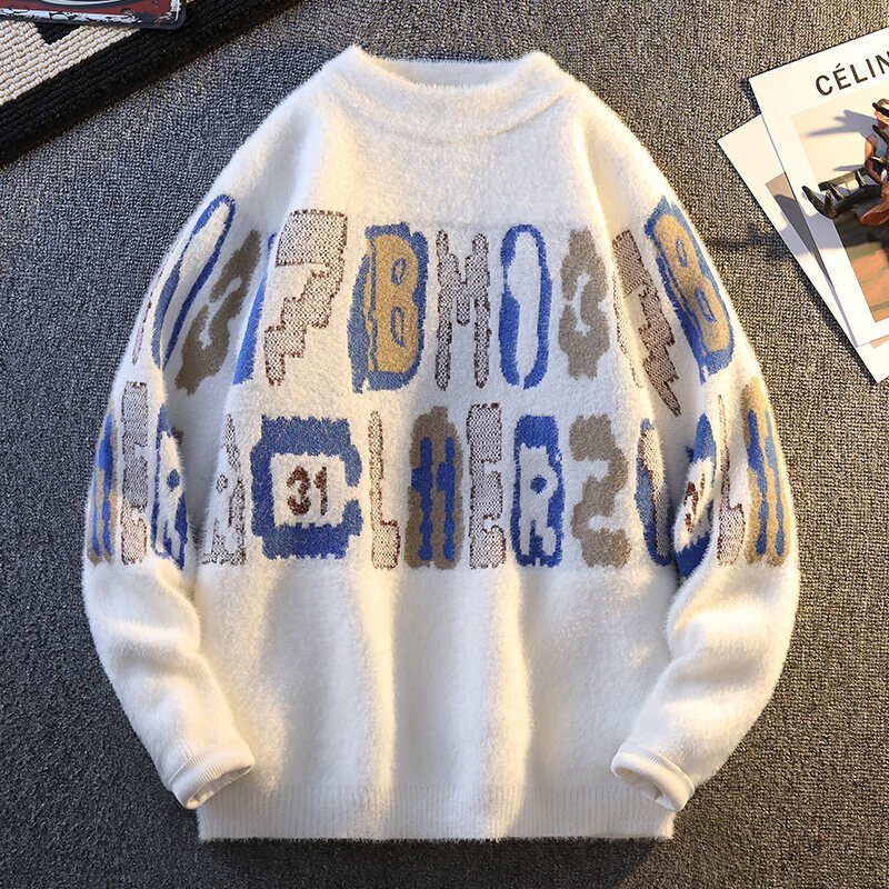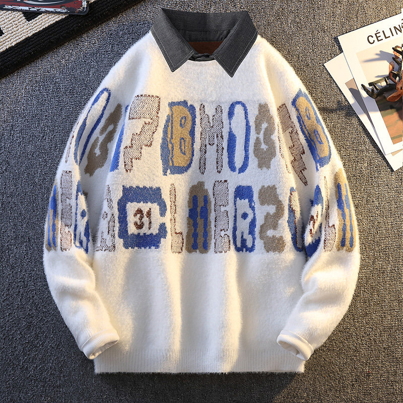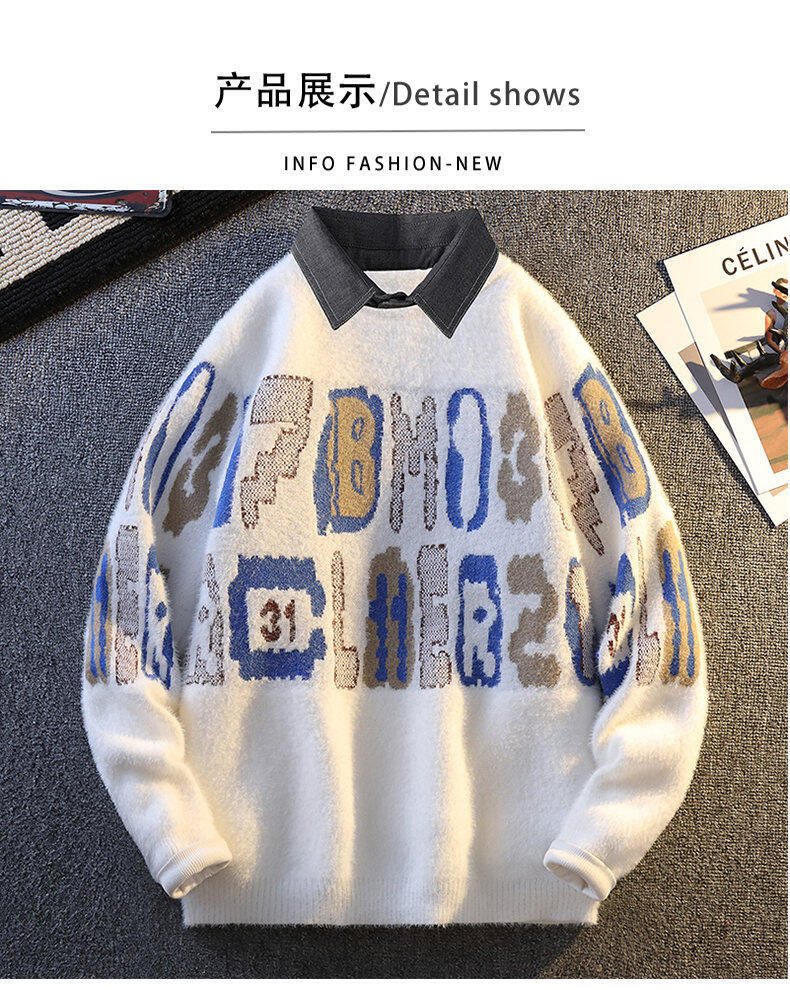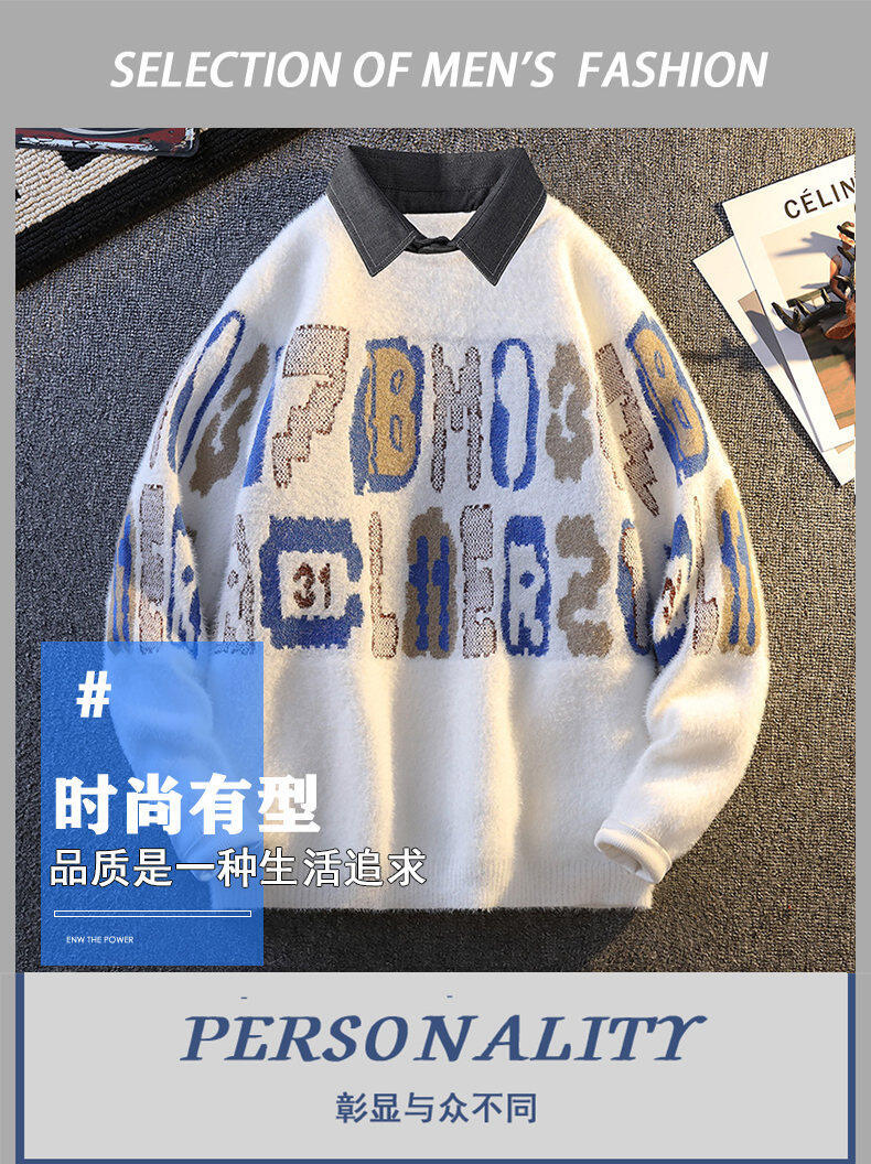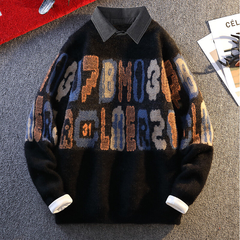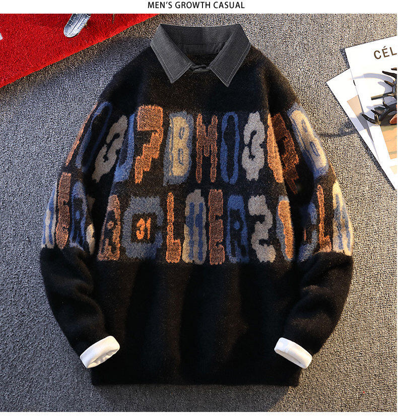 국경 간 대외 무역 세대 남성 니트웨어 [신규] 주로 젊은 밍크 벨벳 패딩 셔츠 칼라 스웨터를 밀어
