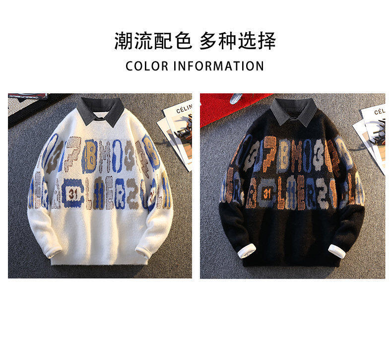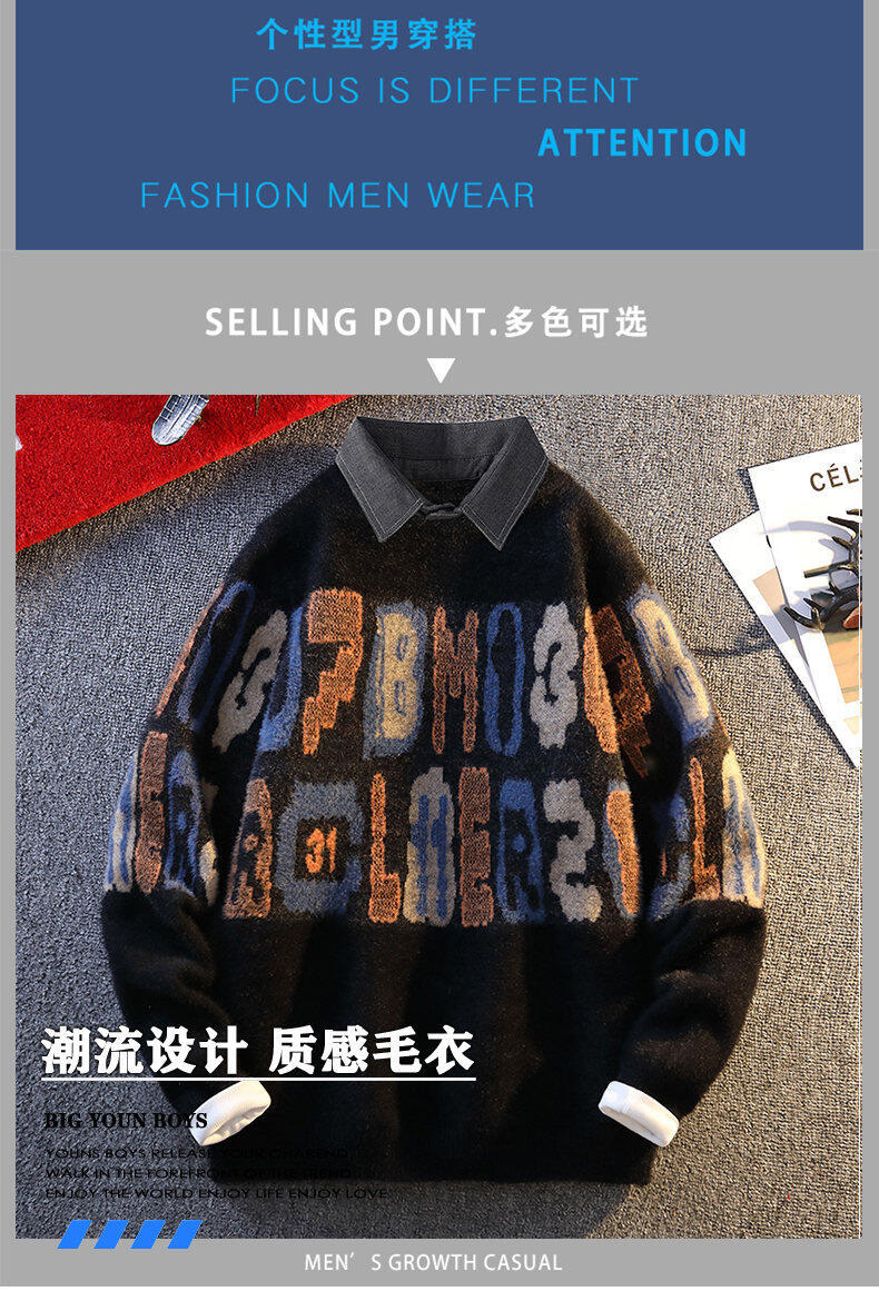 국경 간 대외 무역 세대 남성 니트웨어 [신규] 주로 젊은 밍크 벨벳 패딩 셔츠 칼라 스웨터를 밀어스토어 가기
