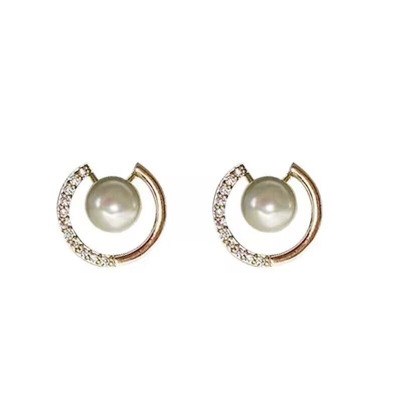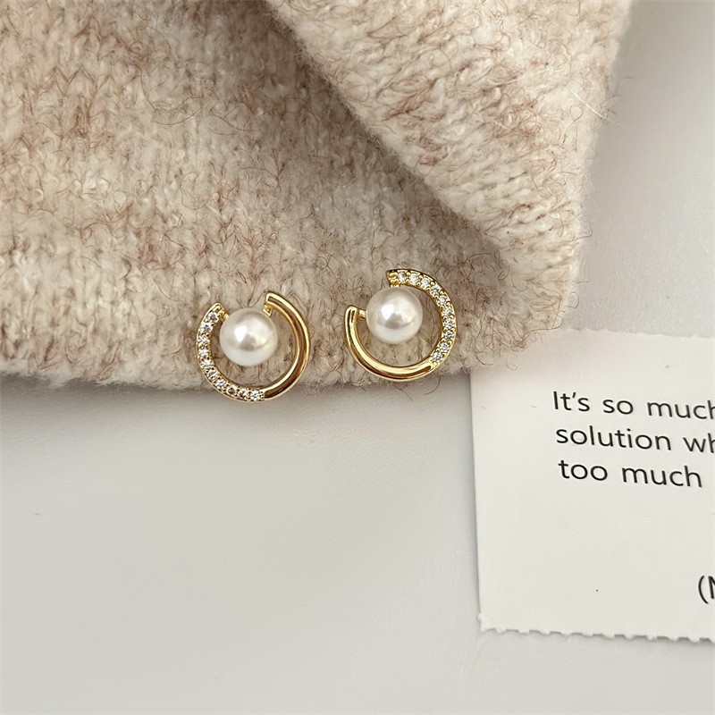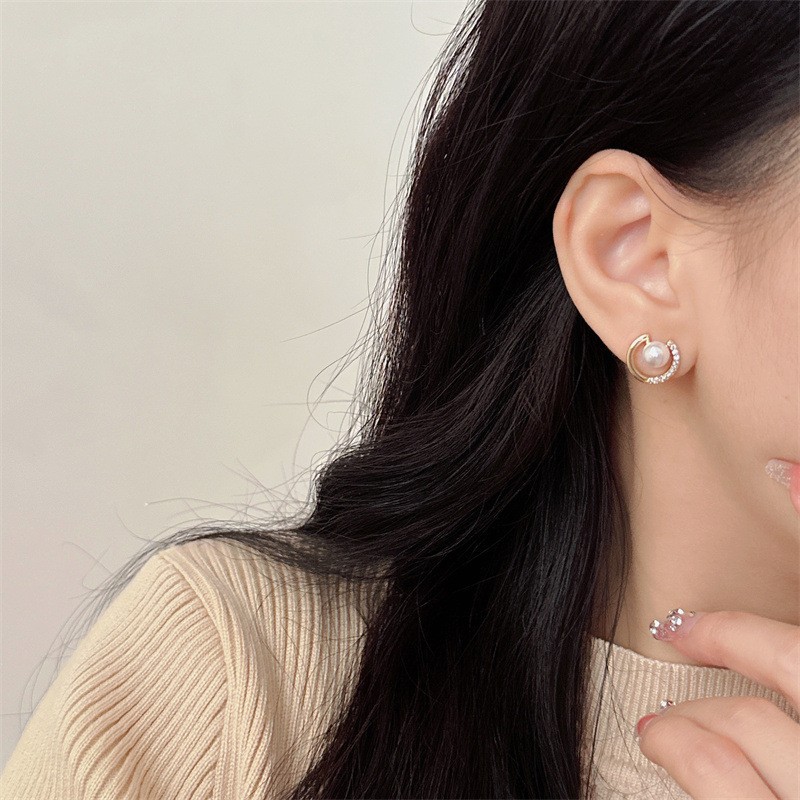 작은 할로우 반원형 진주 다이아몬드 귀걸이 여성용 라이트 럭셔리 틈새 귀걸이 패션 우아한 사이버 연예인 색상 매칭 귀걸이스토어 가기