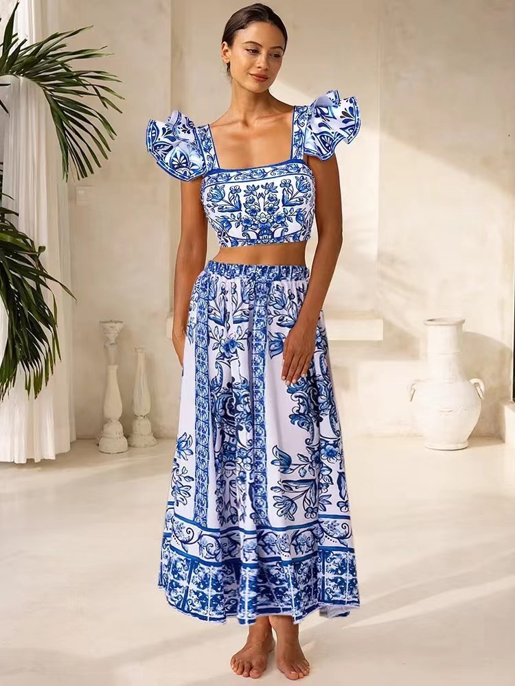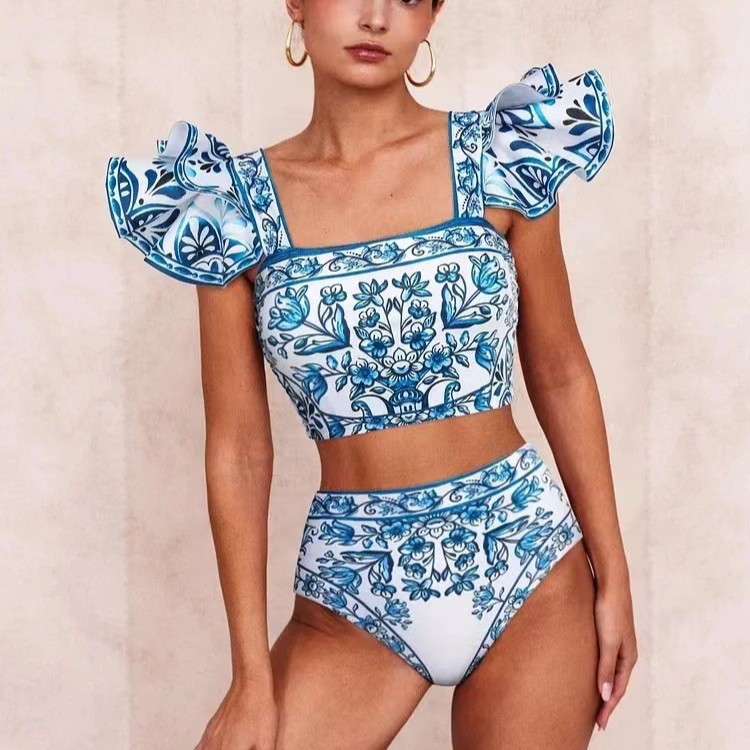2025 유럽과 미국의 국경 새로운 민족 스타일 인쇄 3 피스 세트 분할 비키니 아마존 비치 원피스 여성 수영복