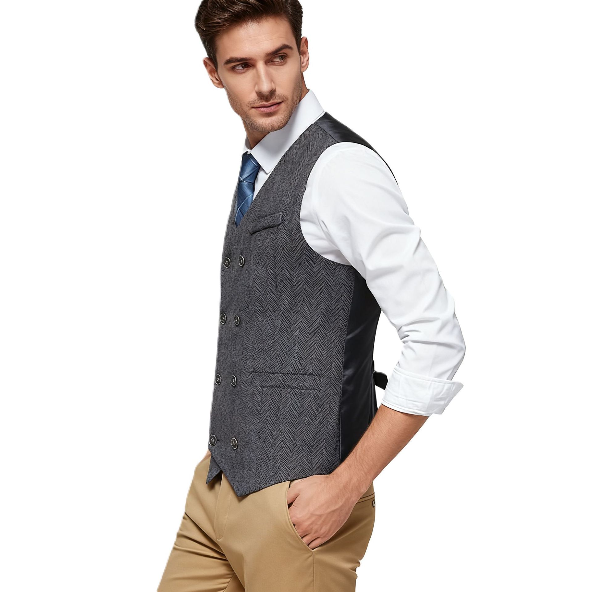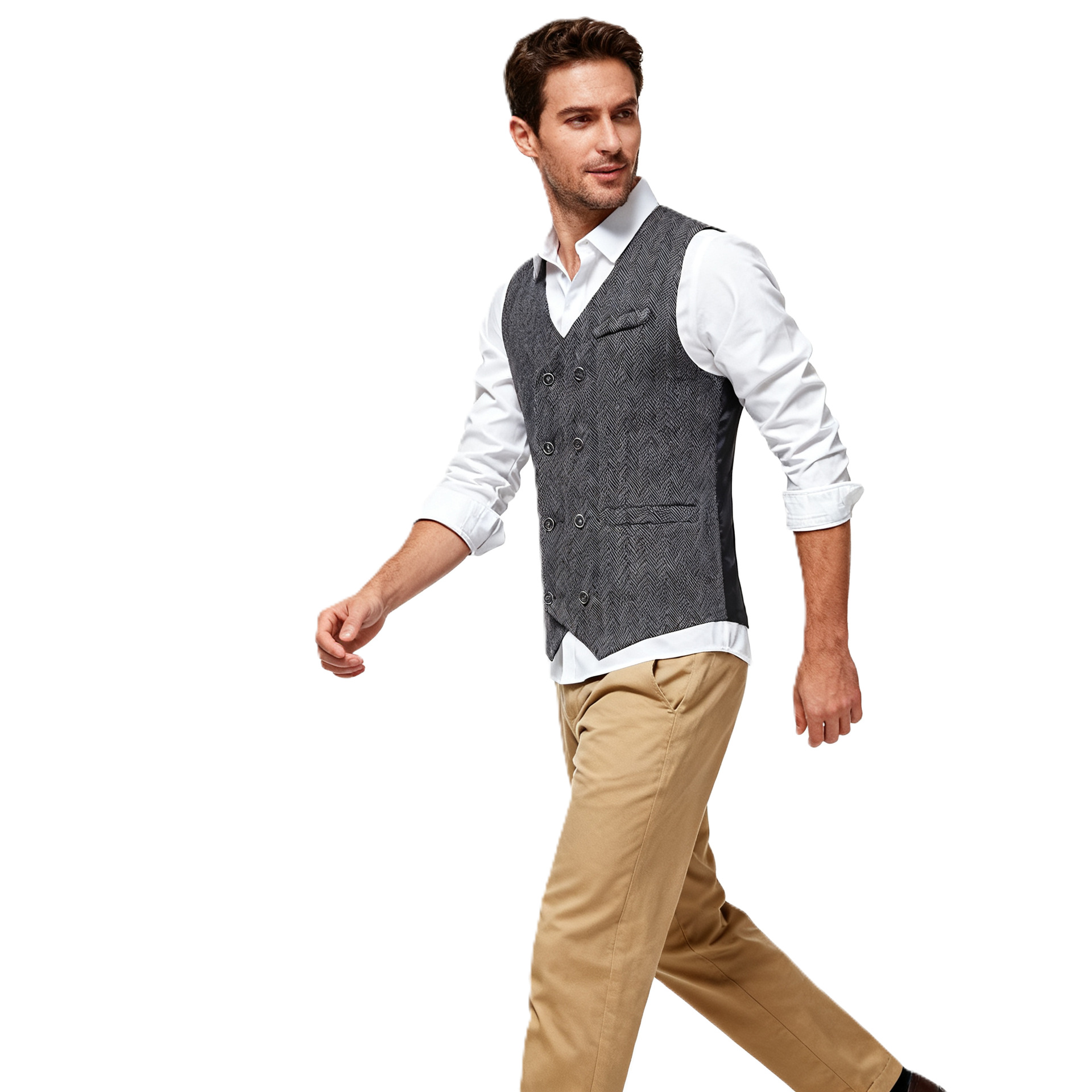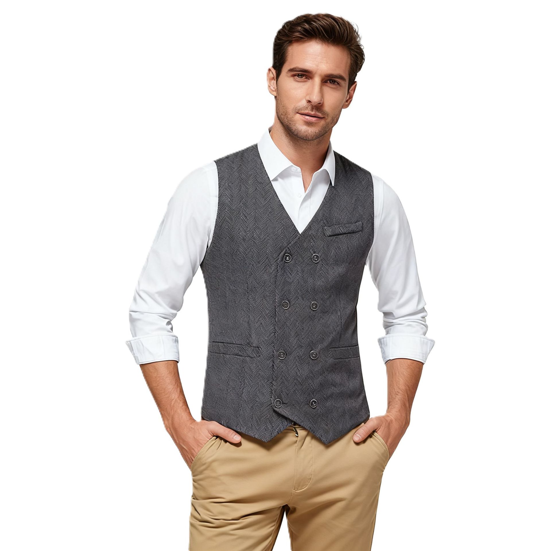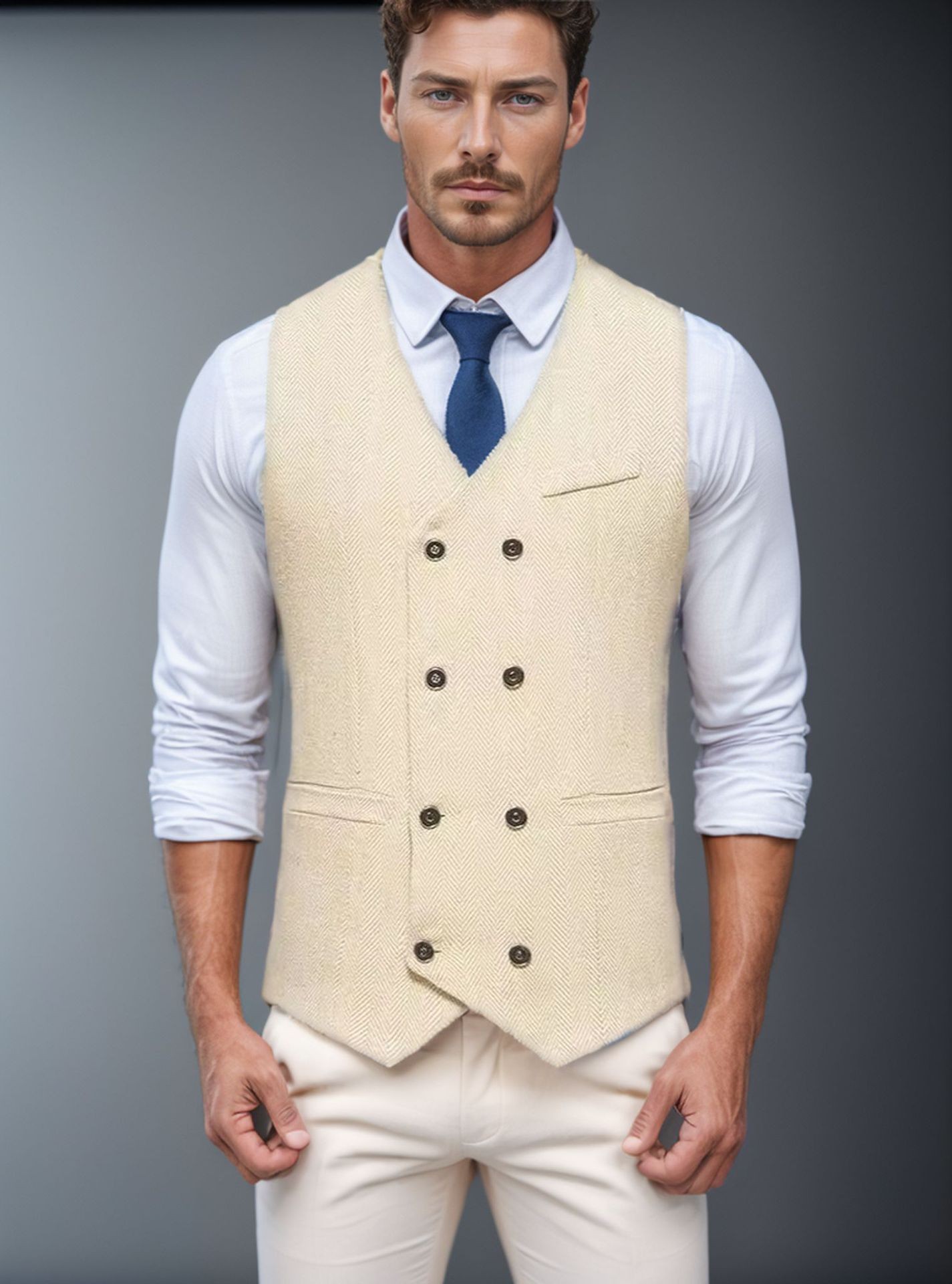 2024 국경을 넘는 봄과 가을 남성 세트 조끼 헤링본 트위드 세트 조끼 빈티지 더블 브레스트 V 넥 조끼