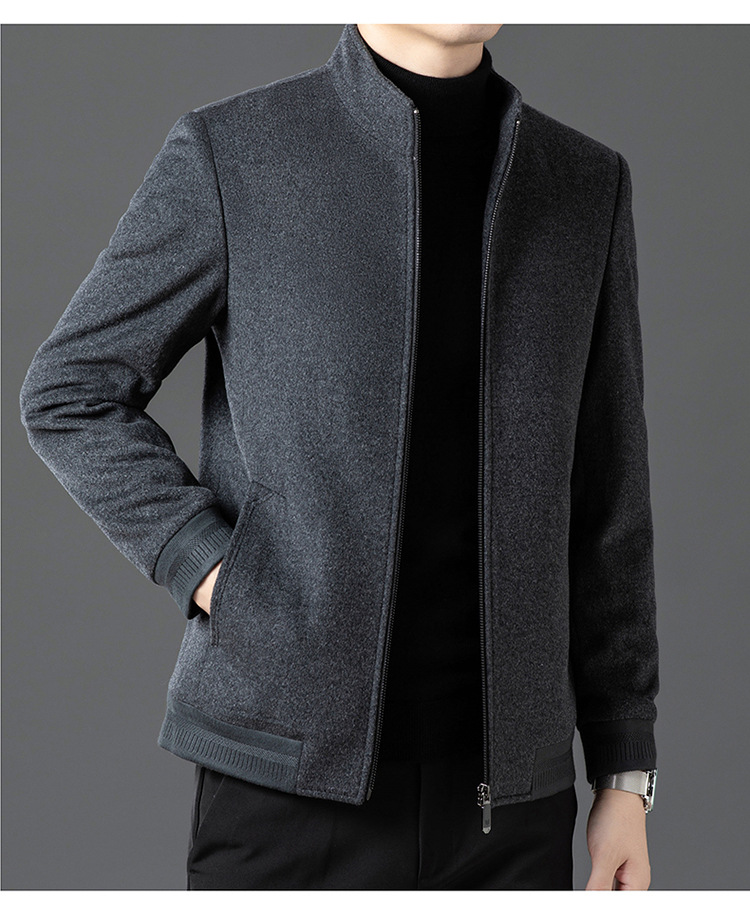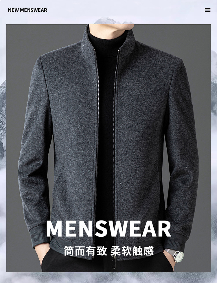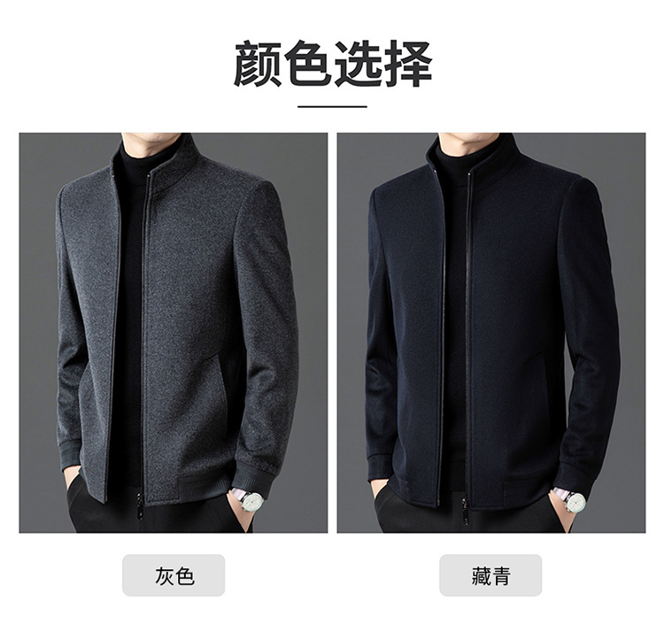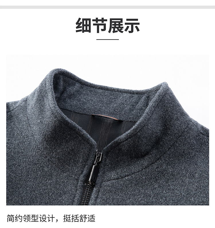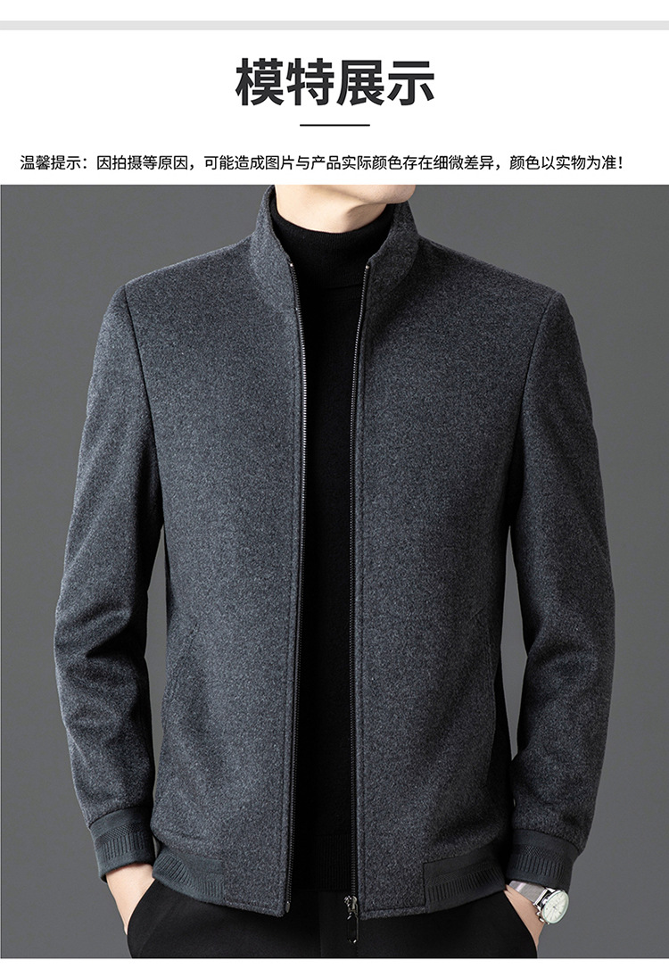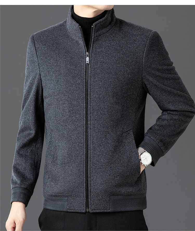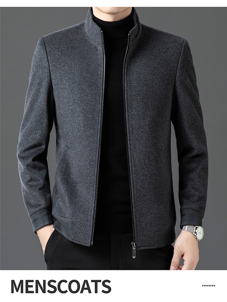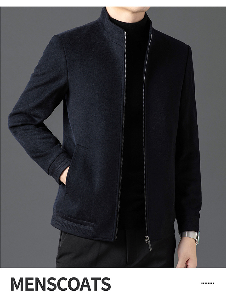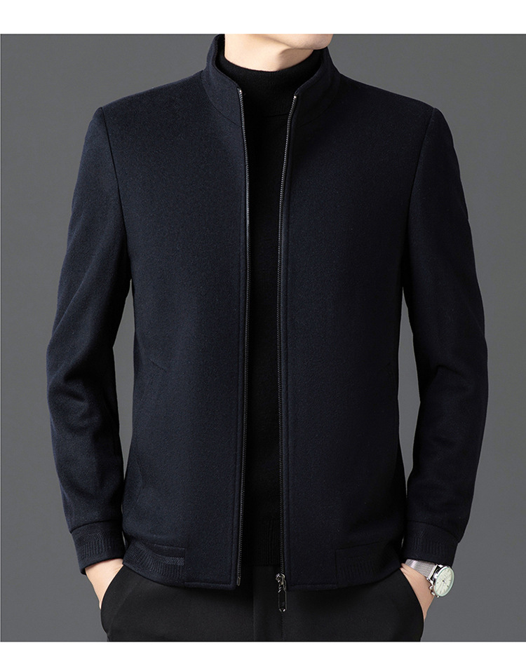 비즈니스 작업 100 순수 모직 코트 남성 수직 칼라 가을 및 겨울을위한 중년 캐주얼 지퍼 재킷스토어 가기