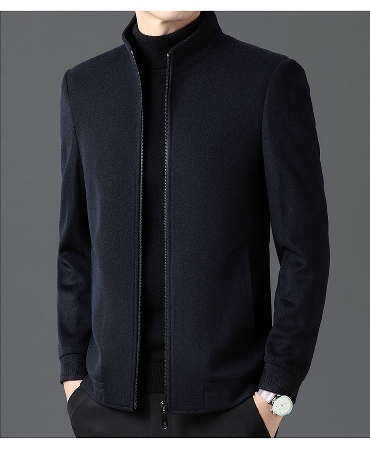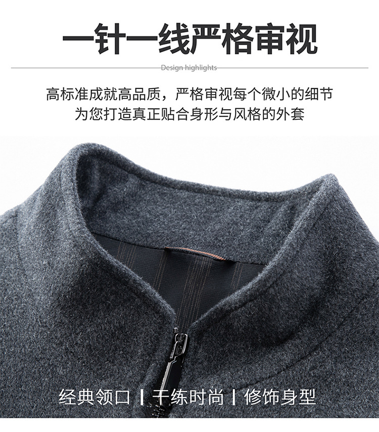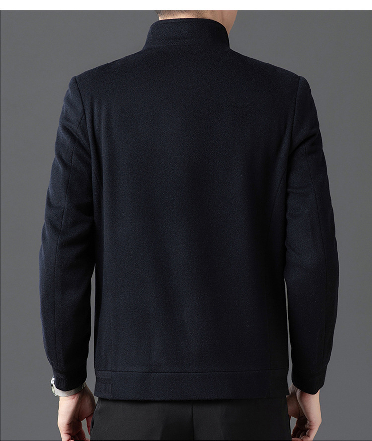비즈니스 작업 100 순수 모직 코트 남성 수직 칼라 가을 및 겨울을위한 중년 캐주얼 지퍼 재킷