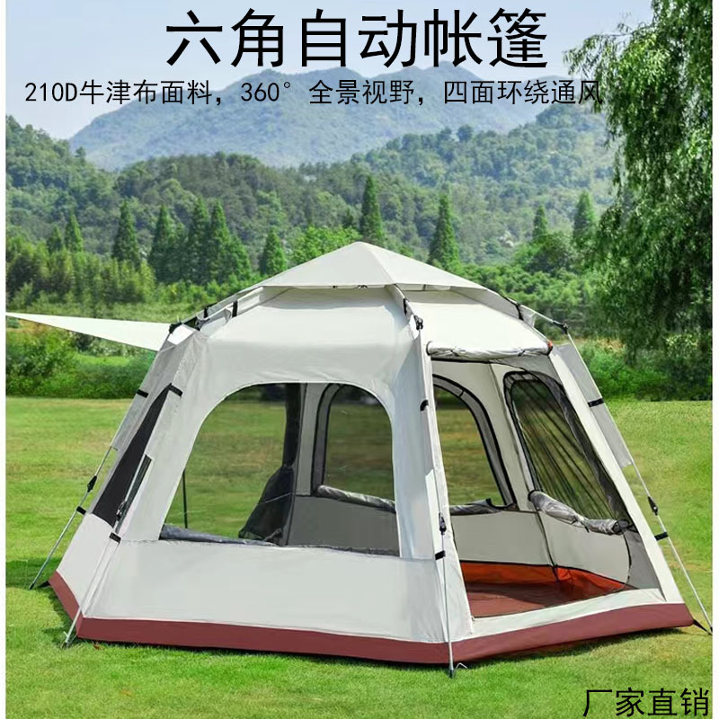 텐트 야외 육각형 자동 개폐 휴대용 야영용 5-8인용 사계절 가족용 방수 차양 방풍