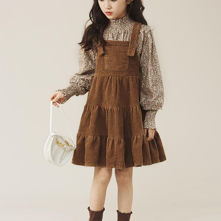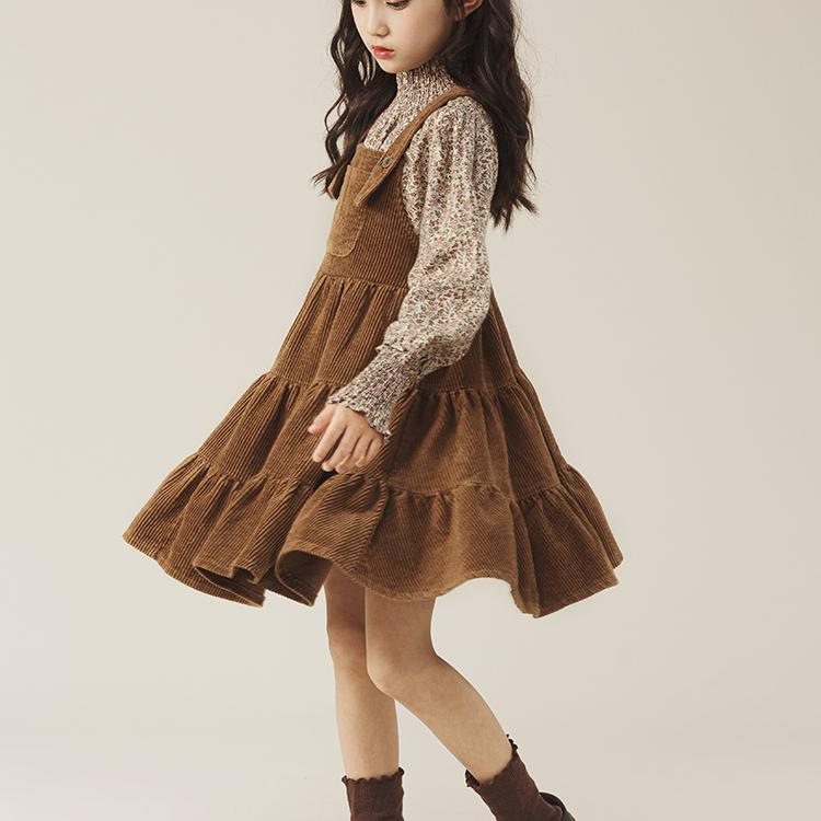 소녀 가을 패션 투피스 세트 2025 새로운 도착 중 및 대형 어린이 꽃 쉬폰 셔츠 슬립 스커트 한국 스타일 투피스 세트 유행스토어 가기