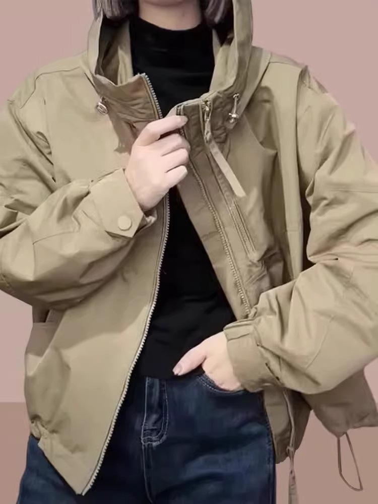 봄과 가을 2024 새로운 여성 후드 충전 재킷 짧은 재킷 폭발 서양식 야구 세트 캐주얼 스포츠 재킷