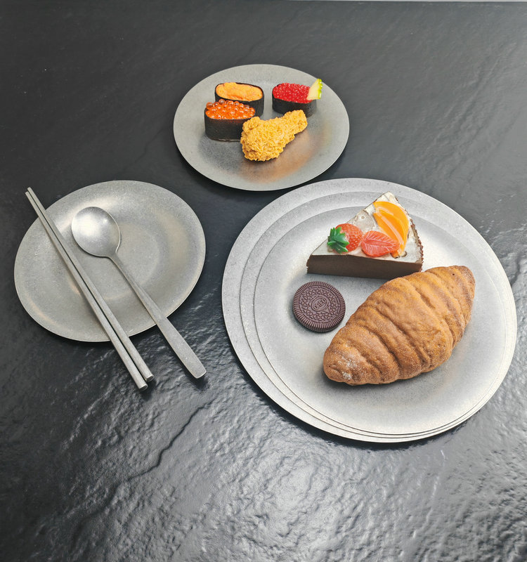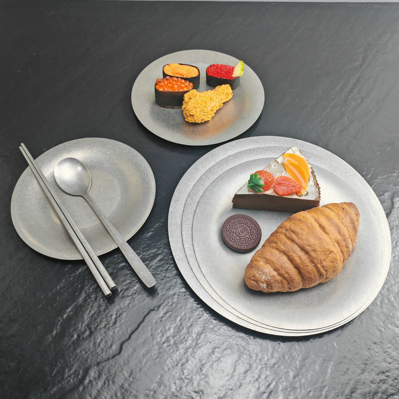 빈티지 오래된 접시 모양의 접시 스테인레스 스틸 창조적 인 눈송이 회색 식기 스테이크 플레이트 딤섬 트레이 림프리 디스크