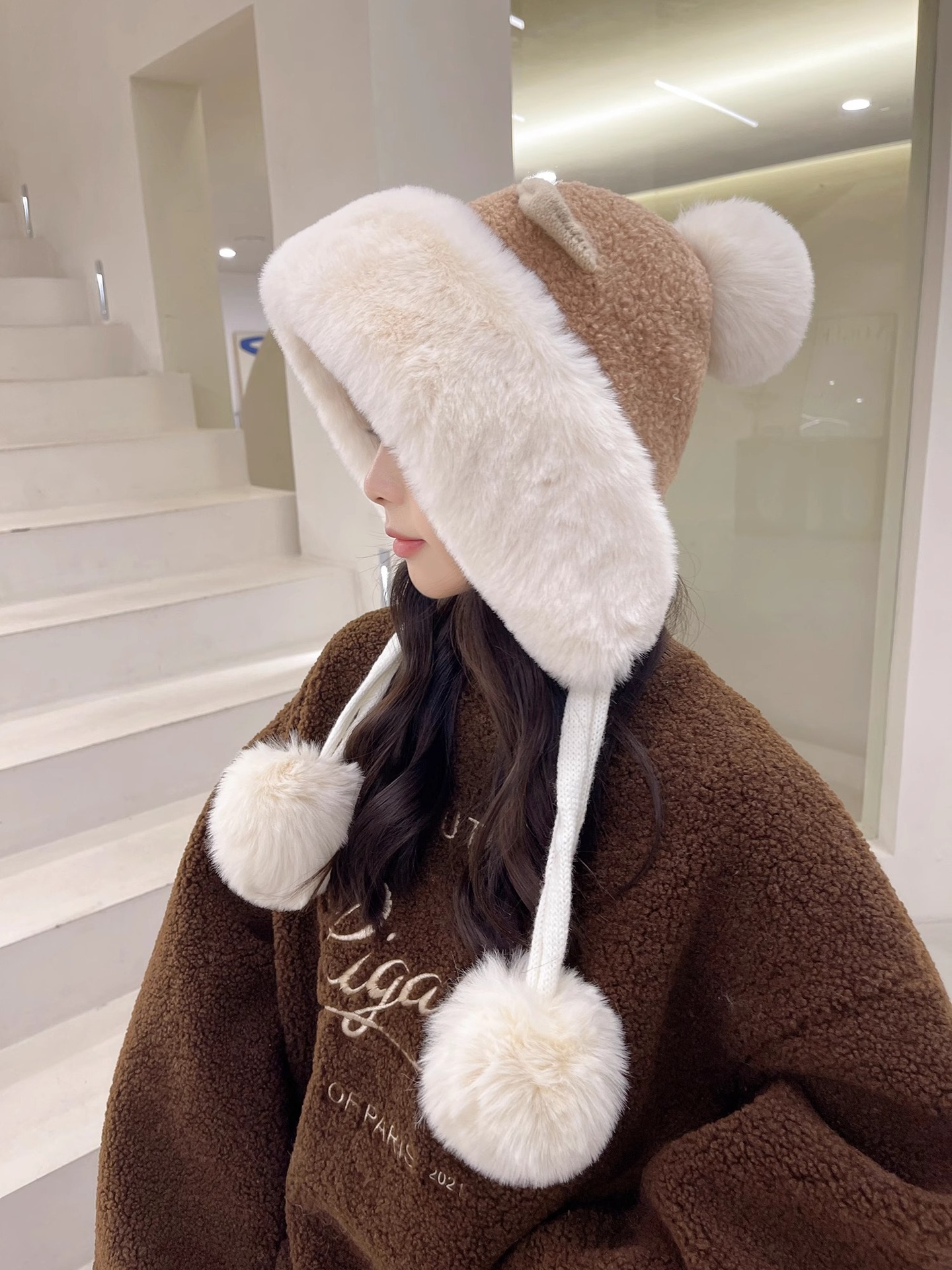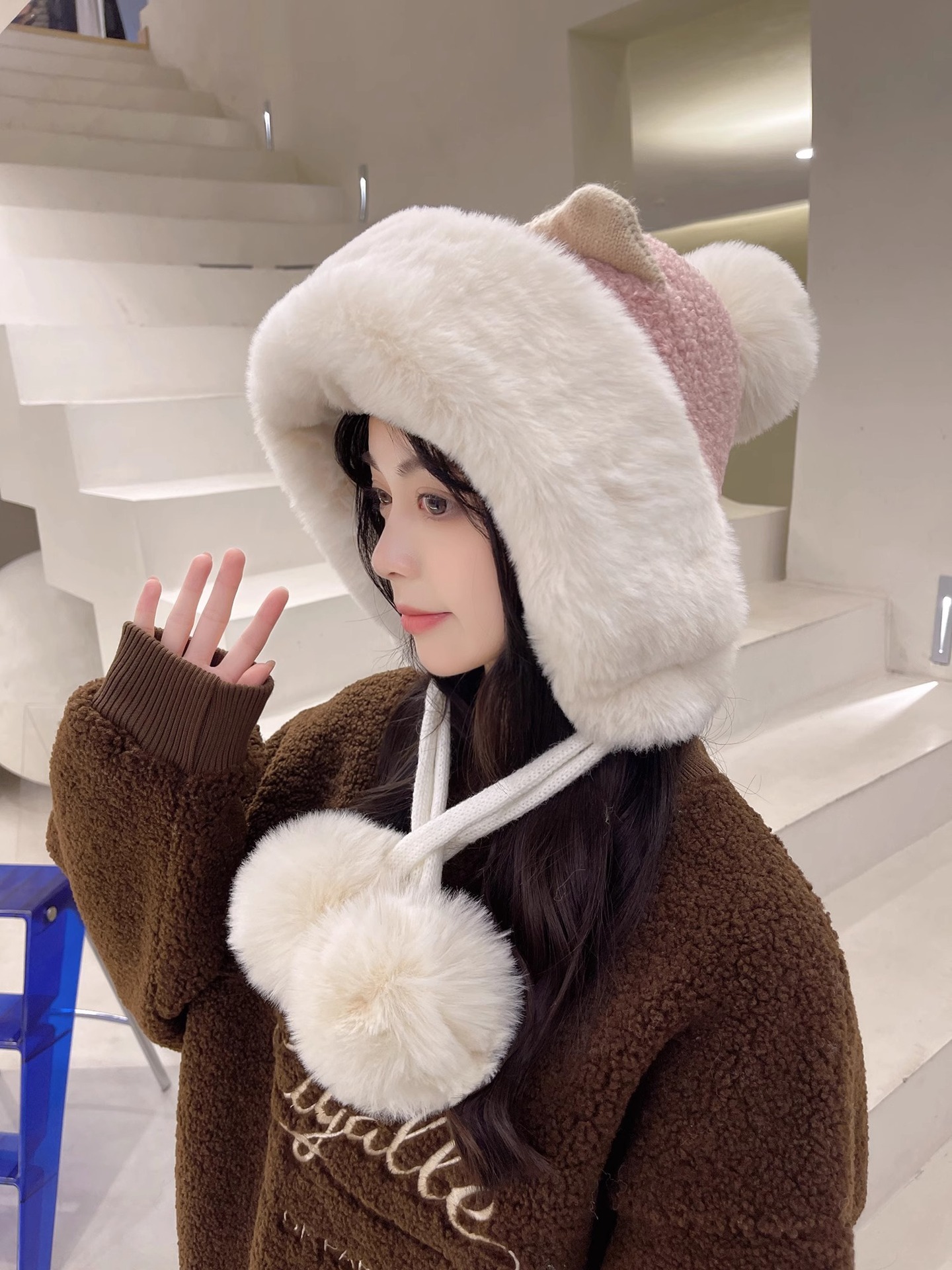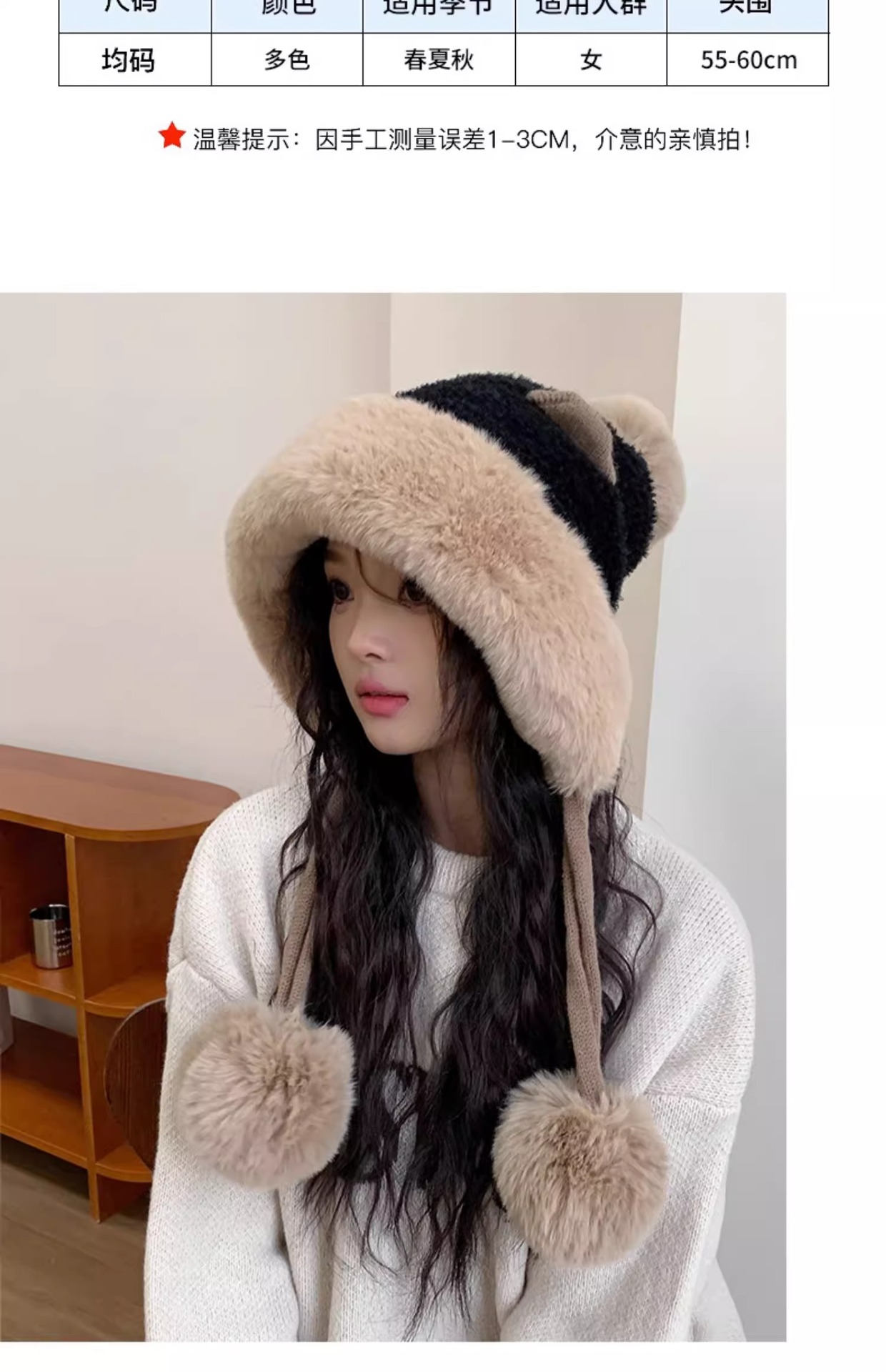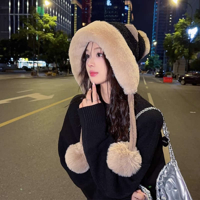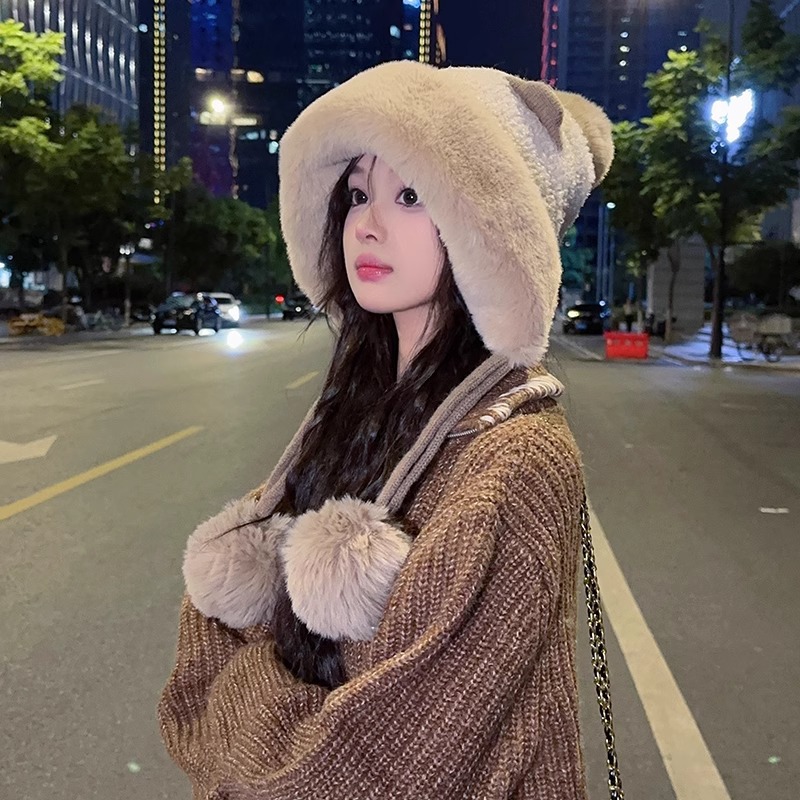 모자 여자 겨울 한국 스타일 올매치 귀여운 귀 봉제 기모 귀 보호 레이 펑 모자 여자 2024 새로운 따뜻한스토어 가기