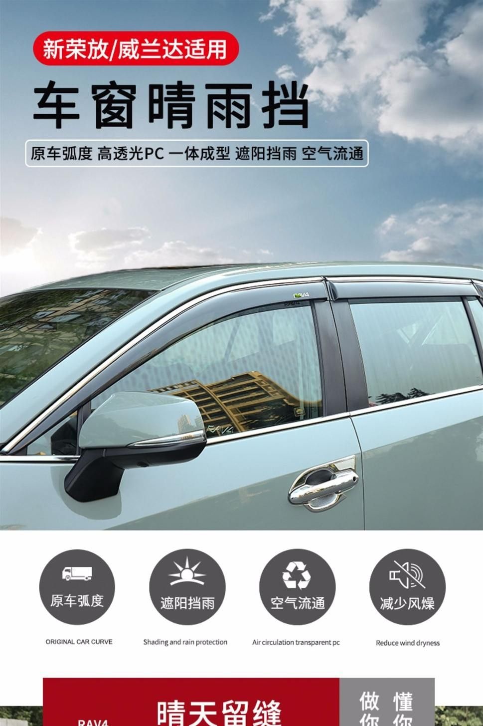 2021 RAV4 Rongfong 비 폭발 Weilanda에 적합 개조 된 높은 빛 전송 창 비 눈썹 비 덮개 장식 스트립