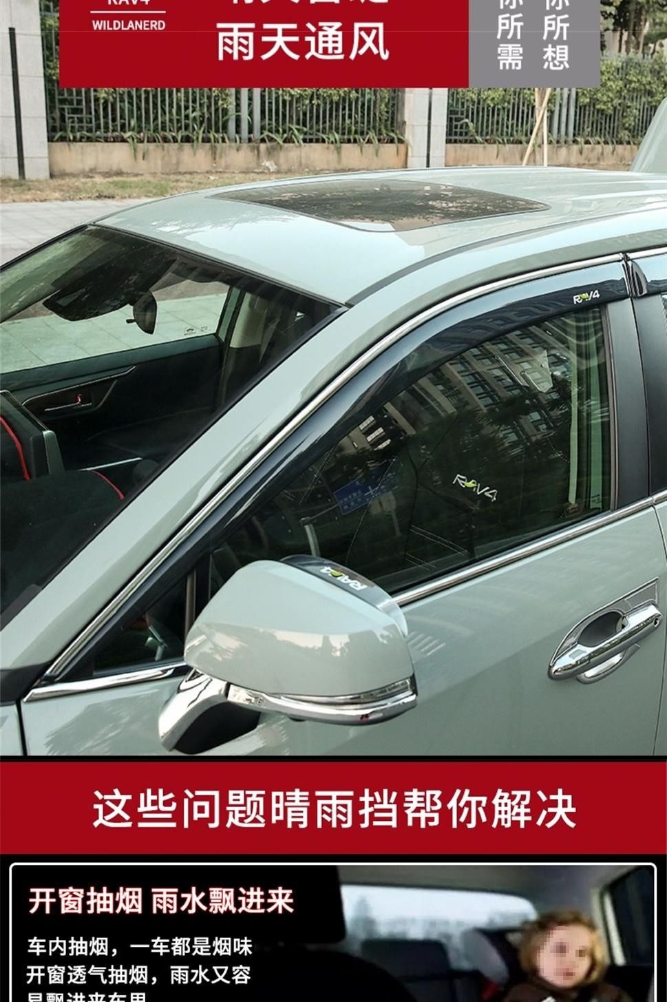 2021 RAV4 Rongfong 비 폭발 Weilanda에 적합 개조 된 높은 빛 전송 창 비 눈썹 비 덮개 장식 스트립스토어 가기
