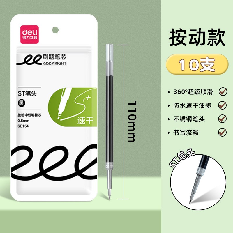 델리 프레스 펜 코어 빠른 드라이 스트 헤드 cs 학생 특수 0.5mm 젤 펜 블랙 테스트 브러시 리필