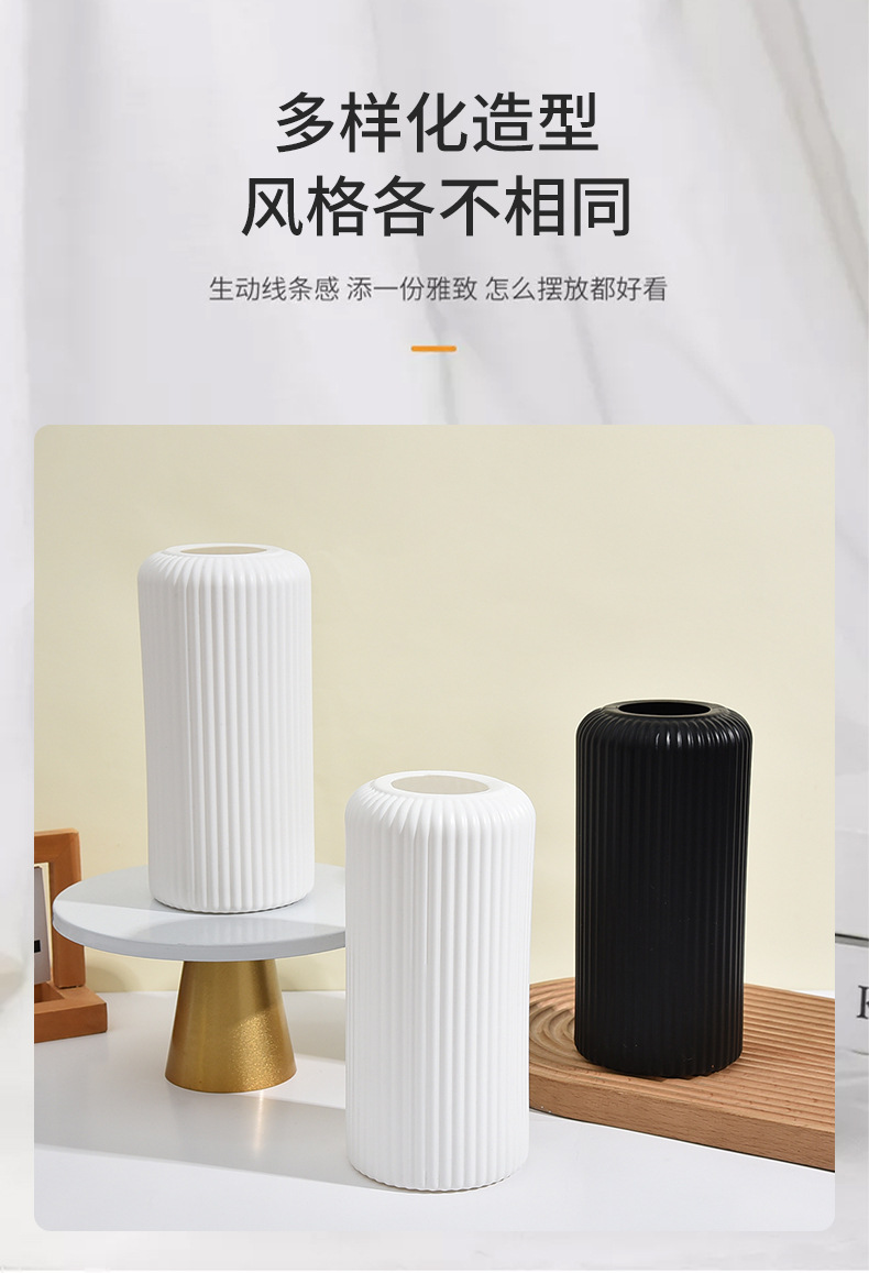 심플한 인스 스타일 줄무늬 플라스틱 꽃병, 북유럽 스타일 플라스틱 랜턴 꽃병, 고급스러운 거실 장식품 도매