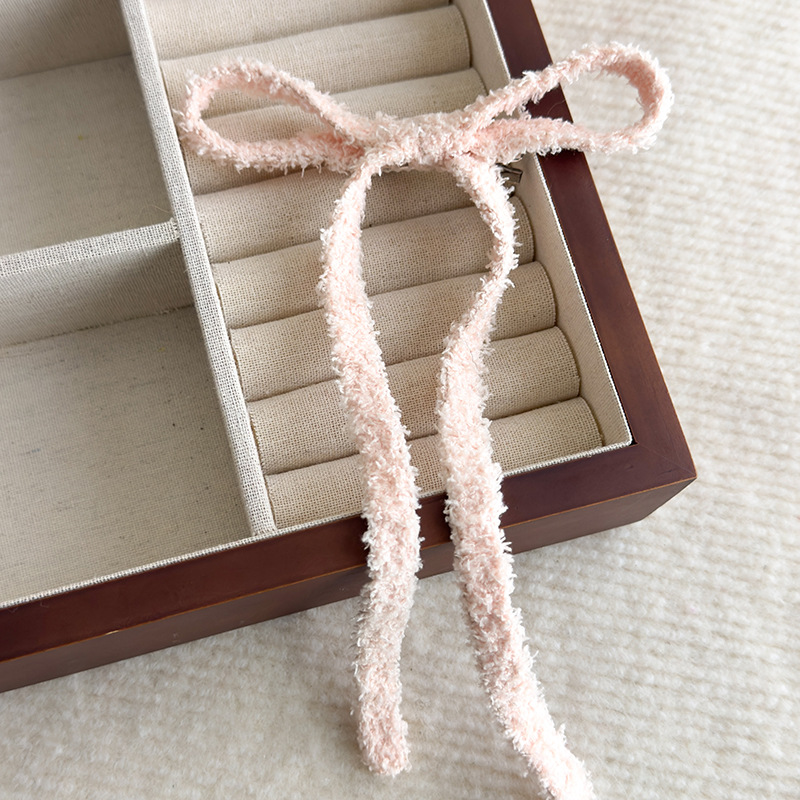 귀여운 봉제 긴 리본 활 머리핀 소녀의 더블 포니 테일 리본 헤어 핀 앰비언스 페어 카드스토어 가기