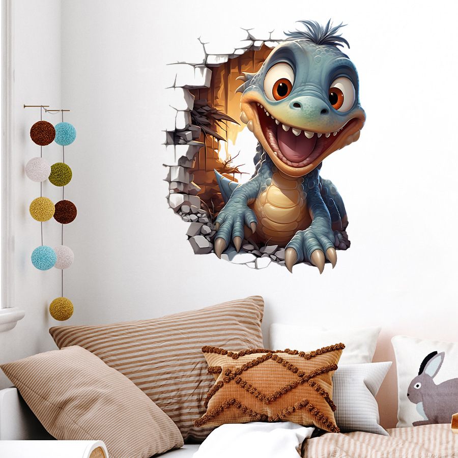만화 수채화 깨진 벽 귀여운 작은 공룡 자기 접착 벽 스티커 침실 연구 아기 방 장식 스티커 BR3302Q