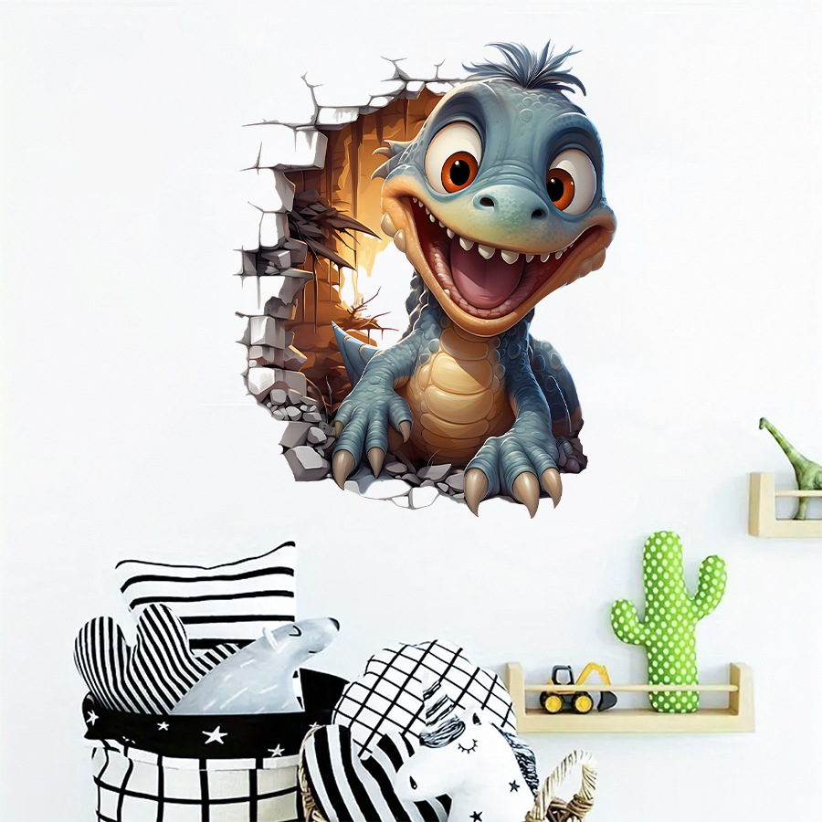 만화 수채화 깨진 벽 귀여운 작은 공룡 자기 접착 벽 스티커 침실 연구 아기 방 장식 스티커 BR3302Q스토어 가기