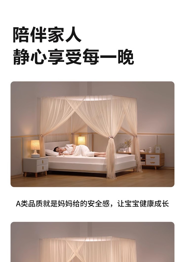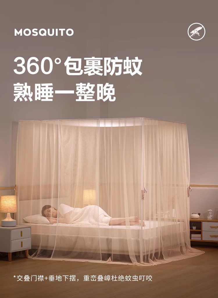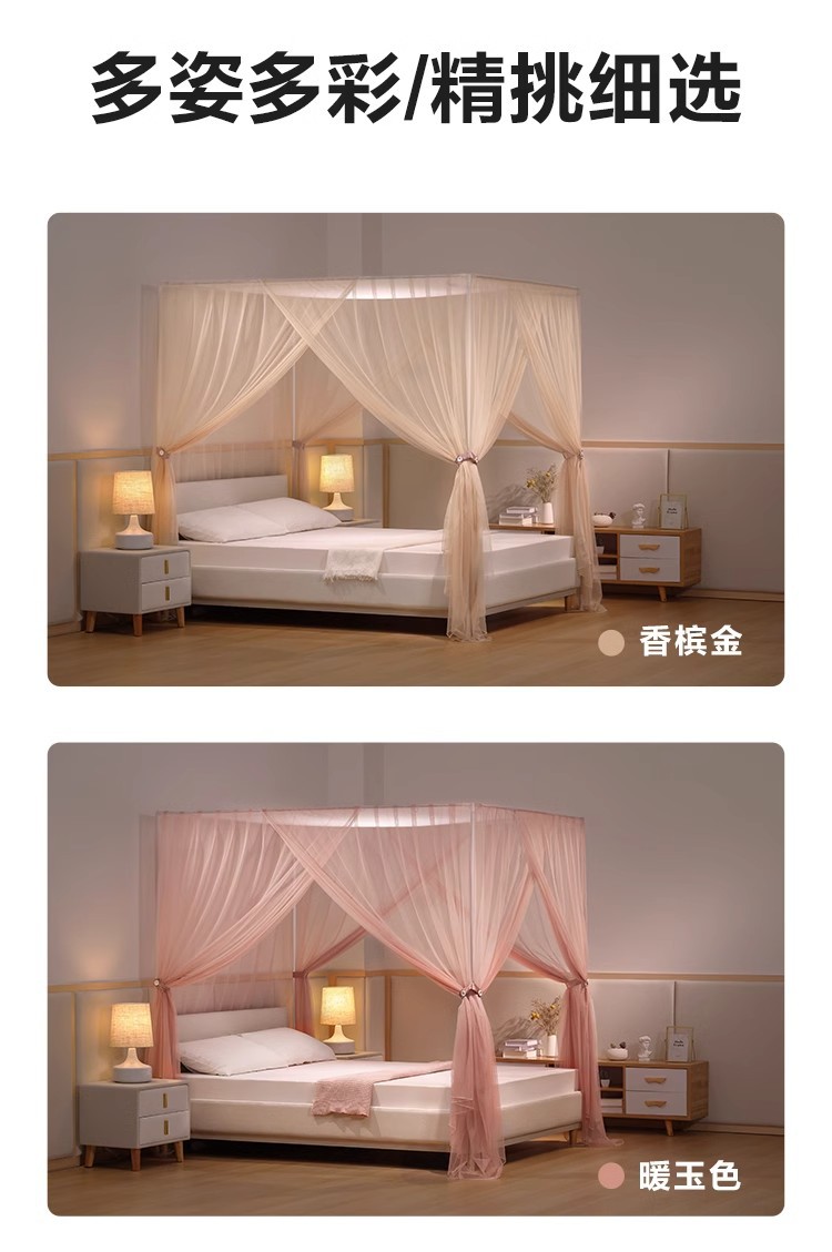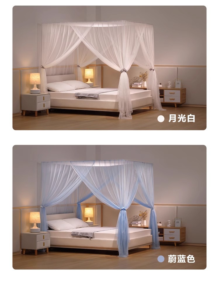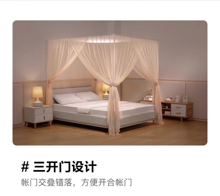 캉헝 모기장 가정용 신형 고급 3도어 모기장 침실 바닥형 침대 커튼 모기장 더블 침대용스토어 가기