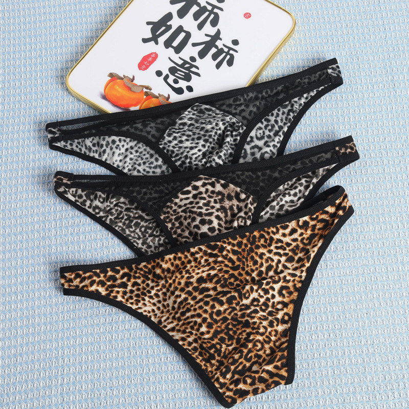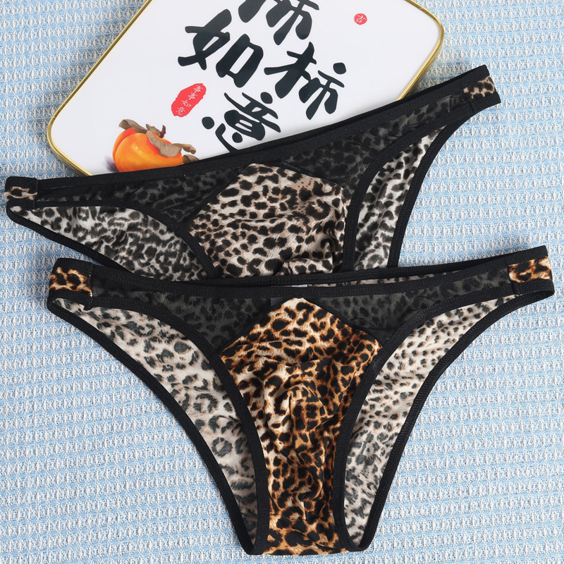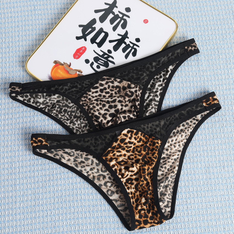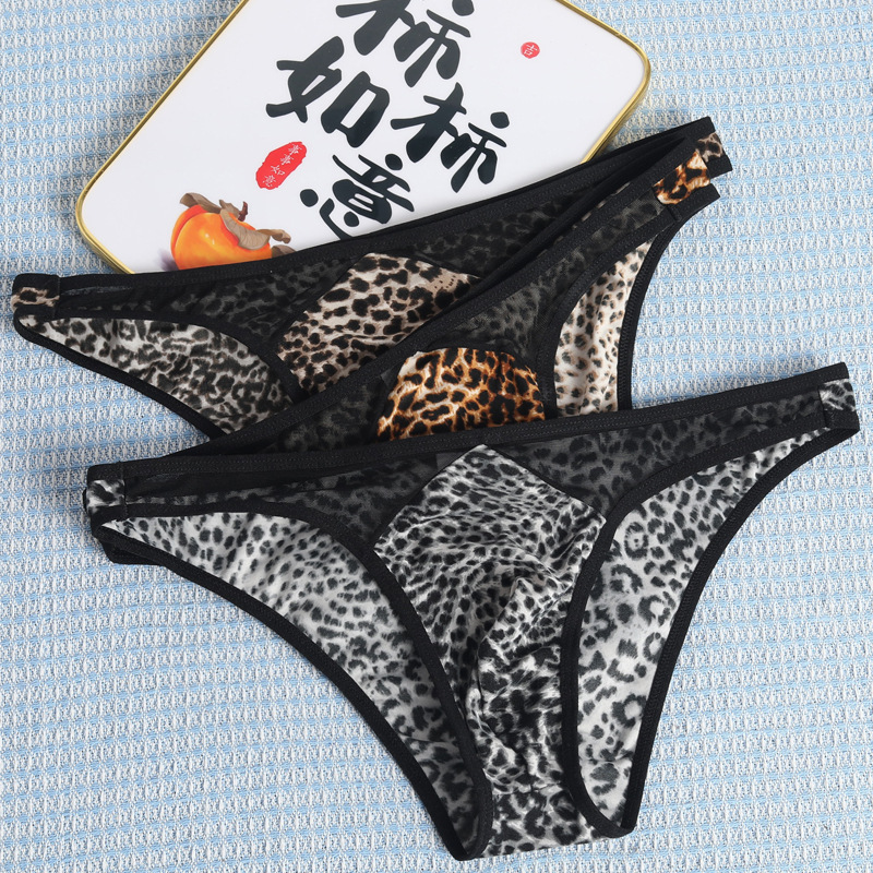 국경 간 새로운 레오파드 무늬 낮은 허리 섹시한 통기성 성인 메쉬 폴리 에스테르 섬유 남성 브리프 짧은 바지스토어 가기