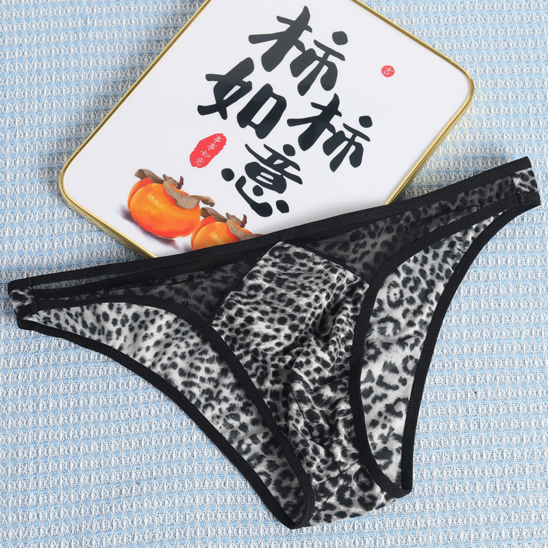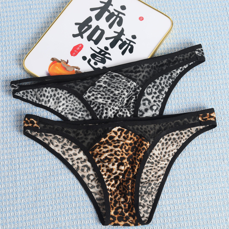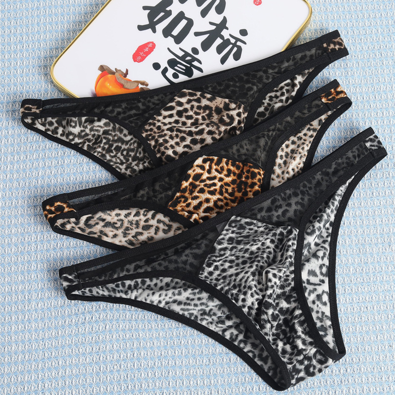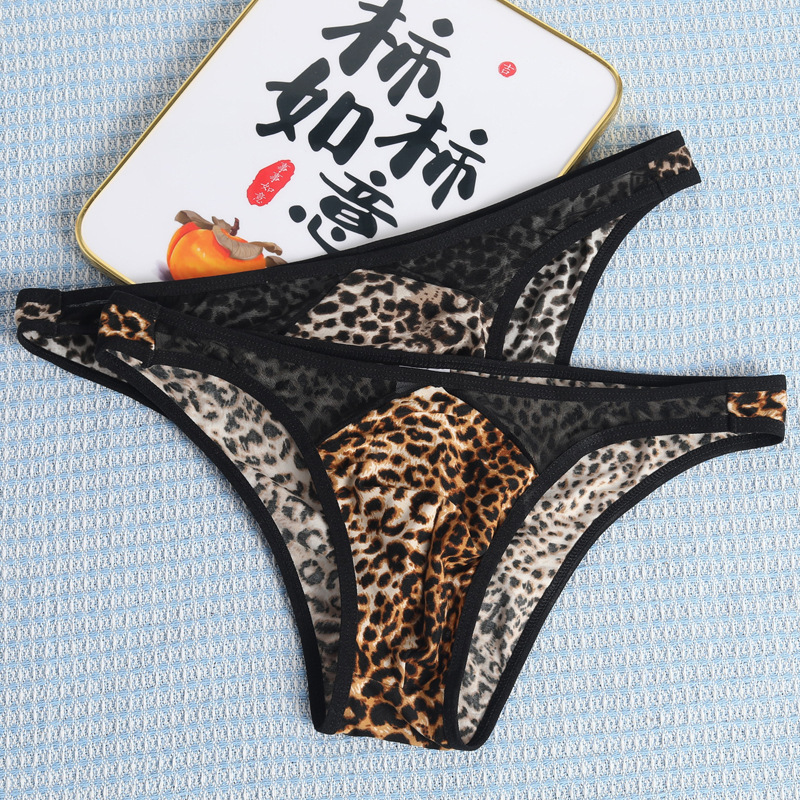 국경 간 새로운 레오파드 무늬 낮은 허리 섹시한 통기성 성인 메쉬 폴리 에스테르 섬유 남성 브리프 짧은 바지
