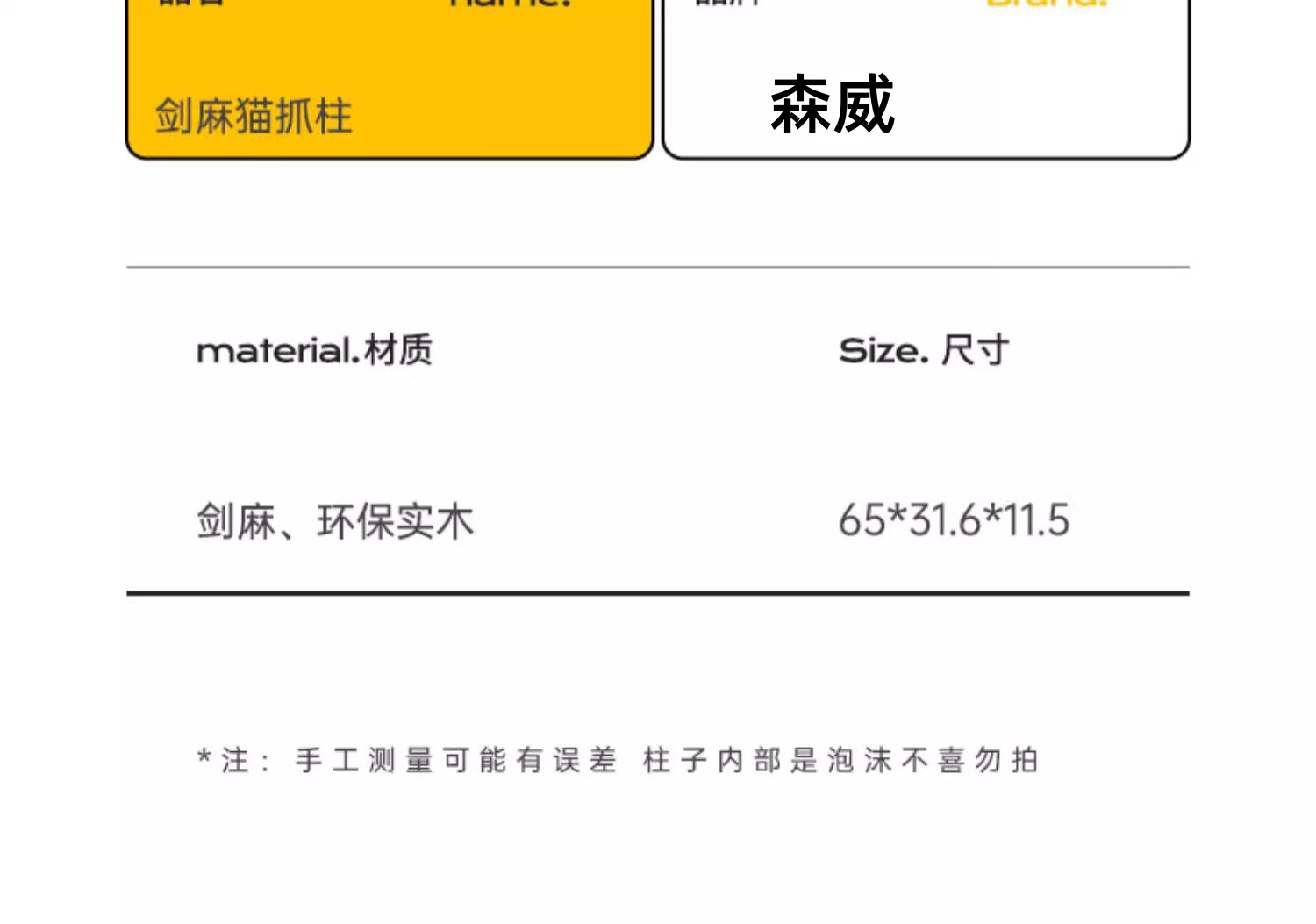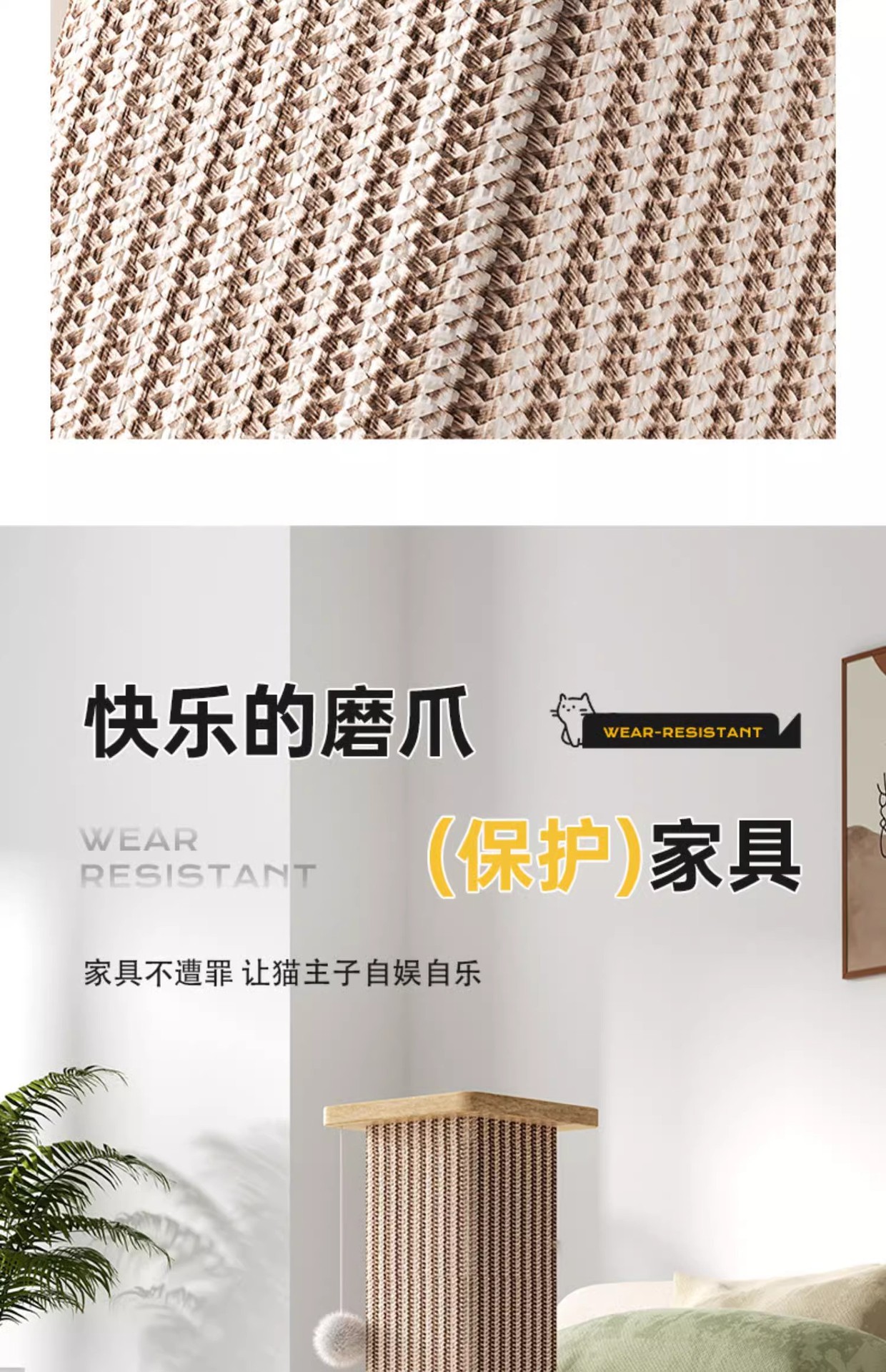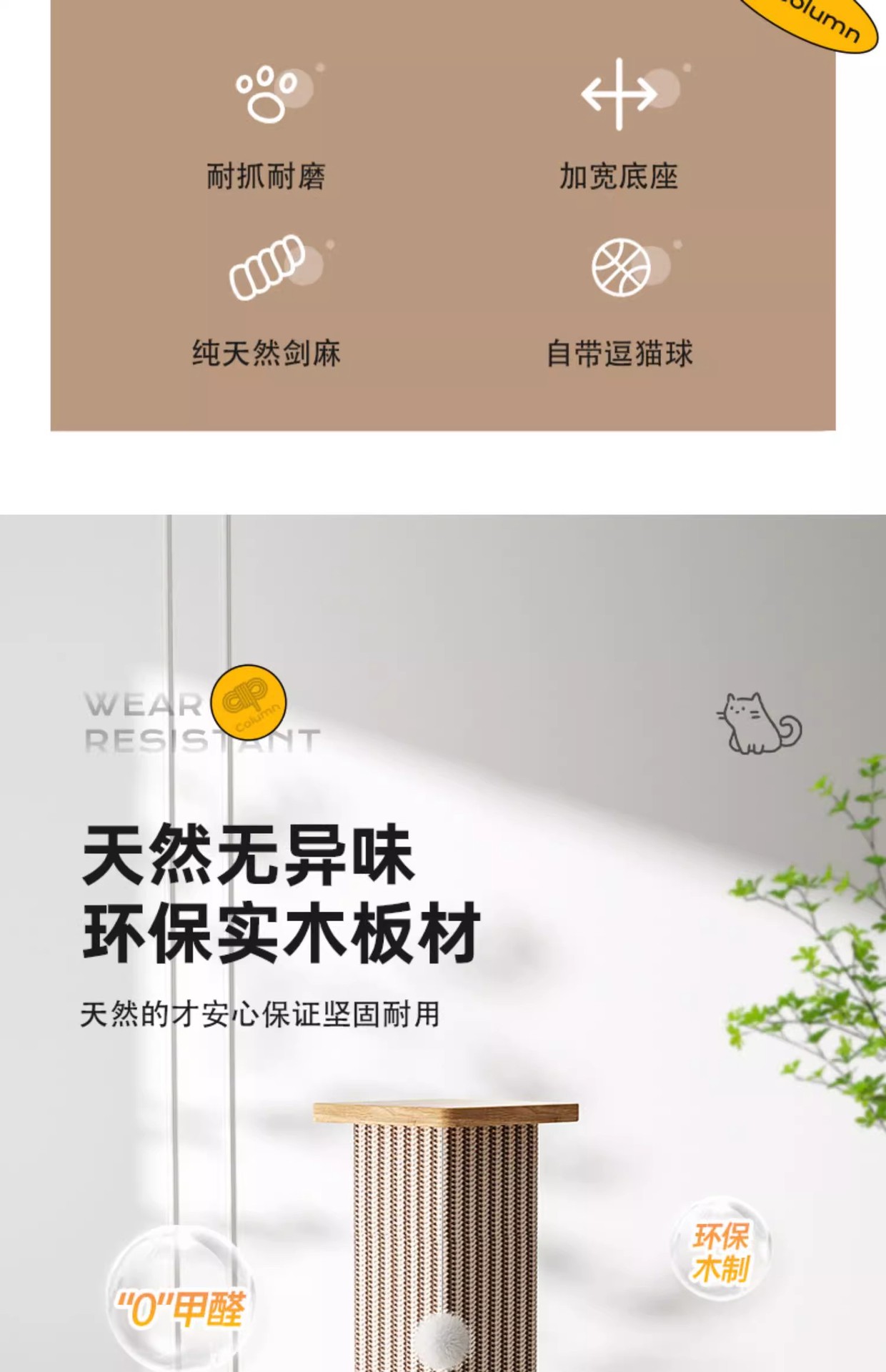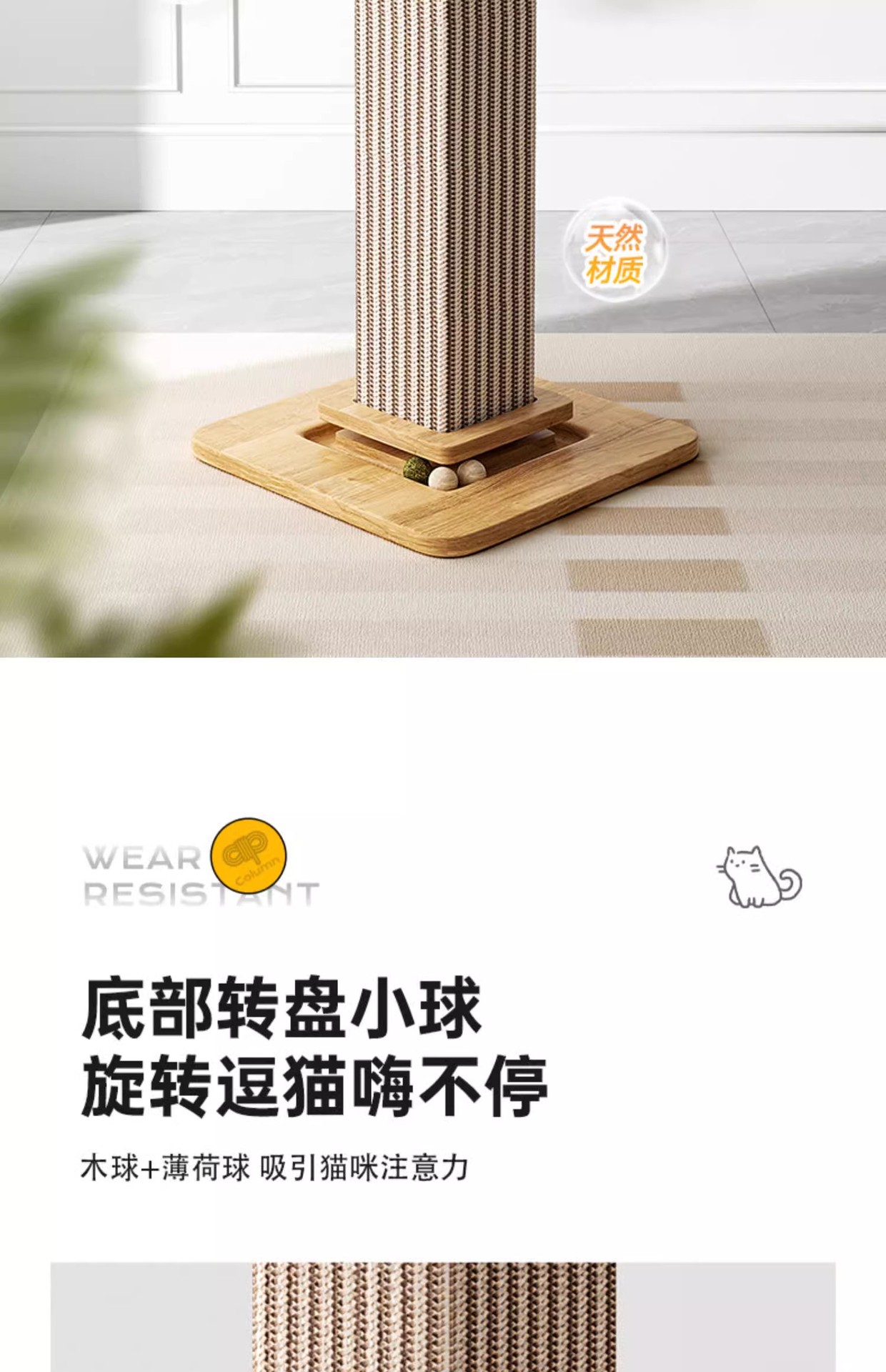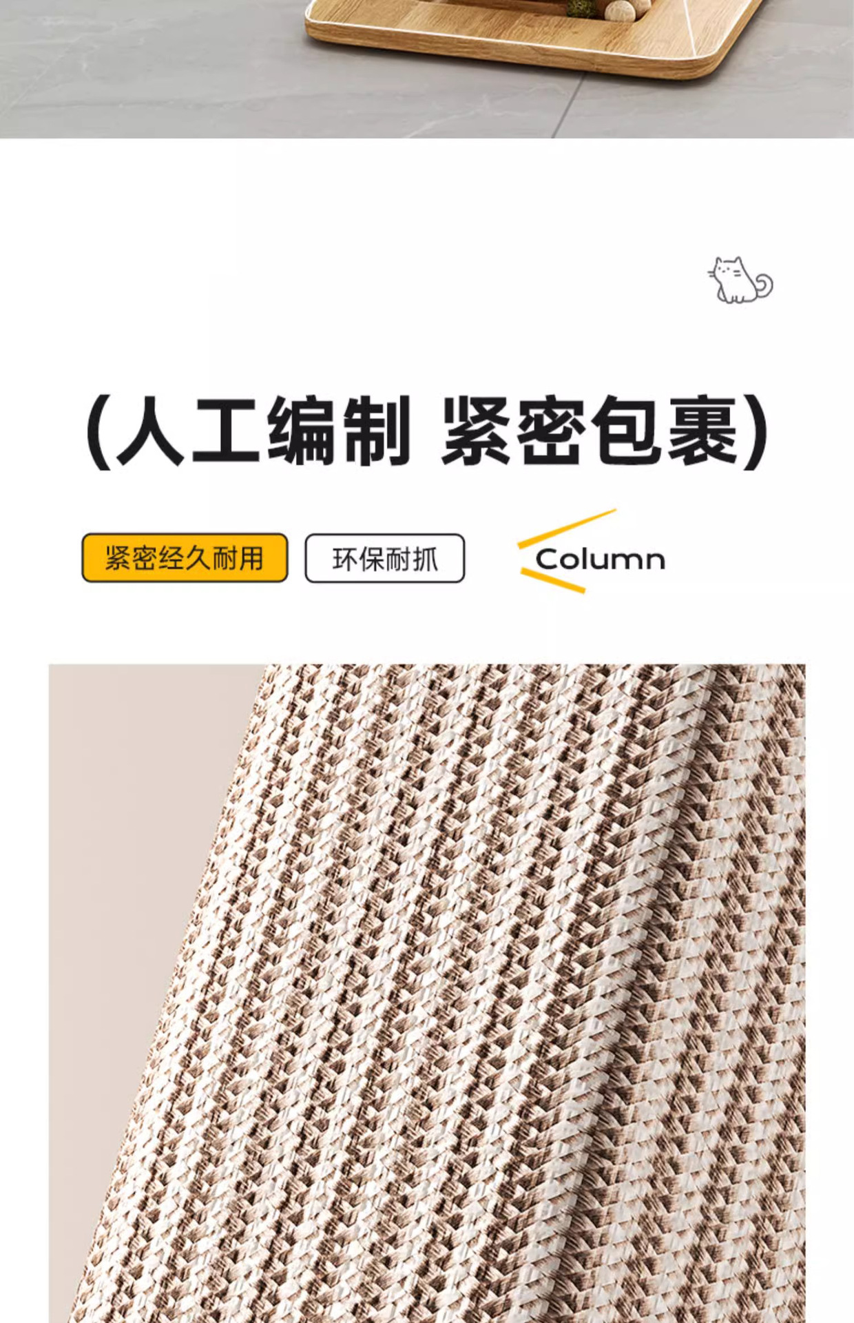 • 노란색 사이잘 고양이 긁는 기둥 - 단단한 나무 모델 [스크래치 방지, 내마모성 및 부스러기 방지]