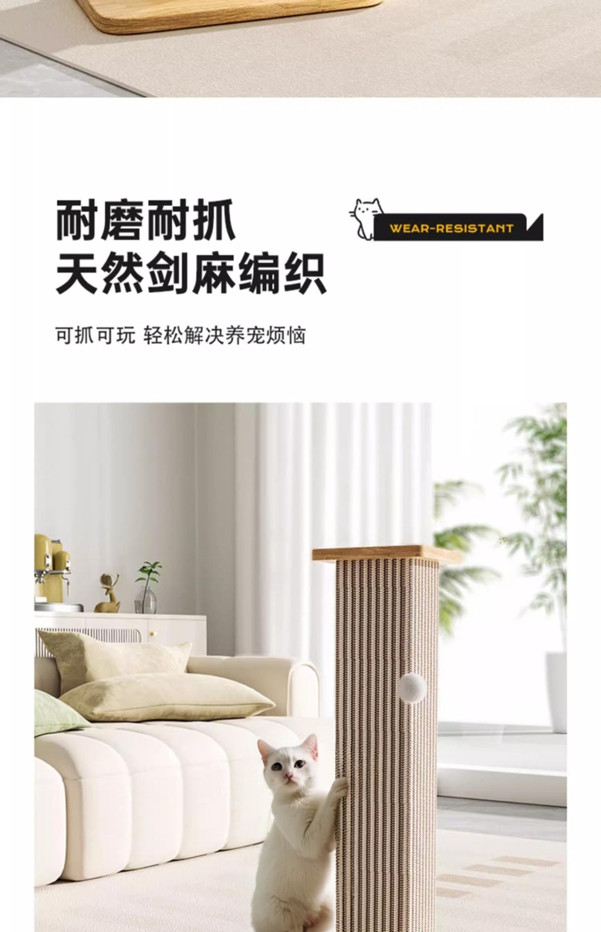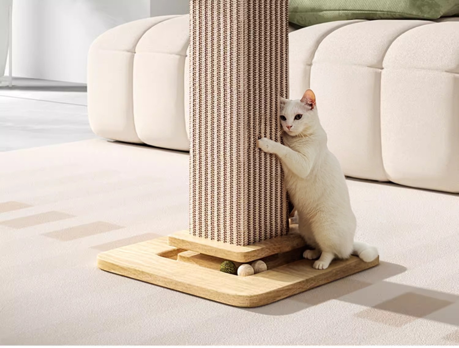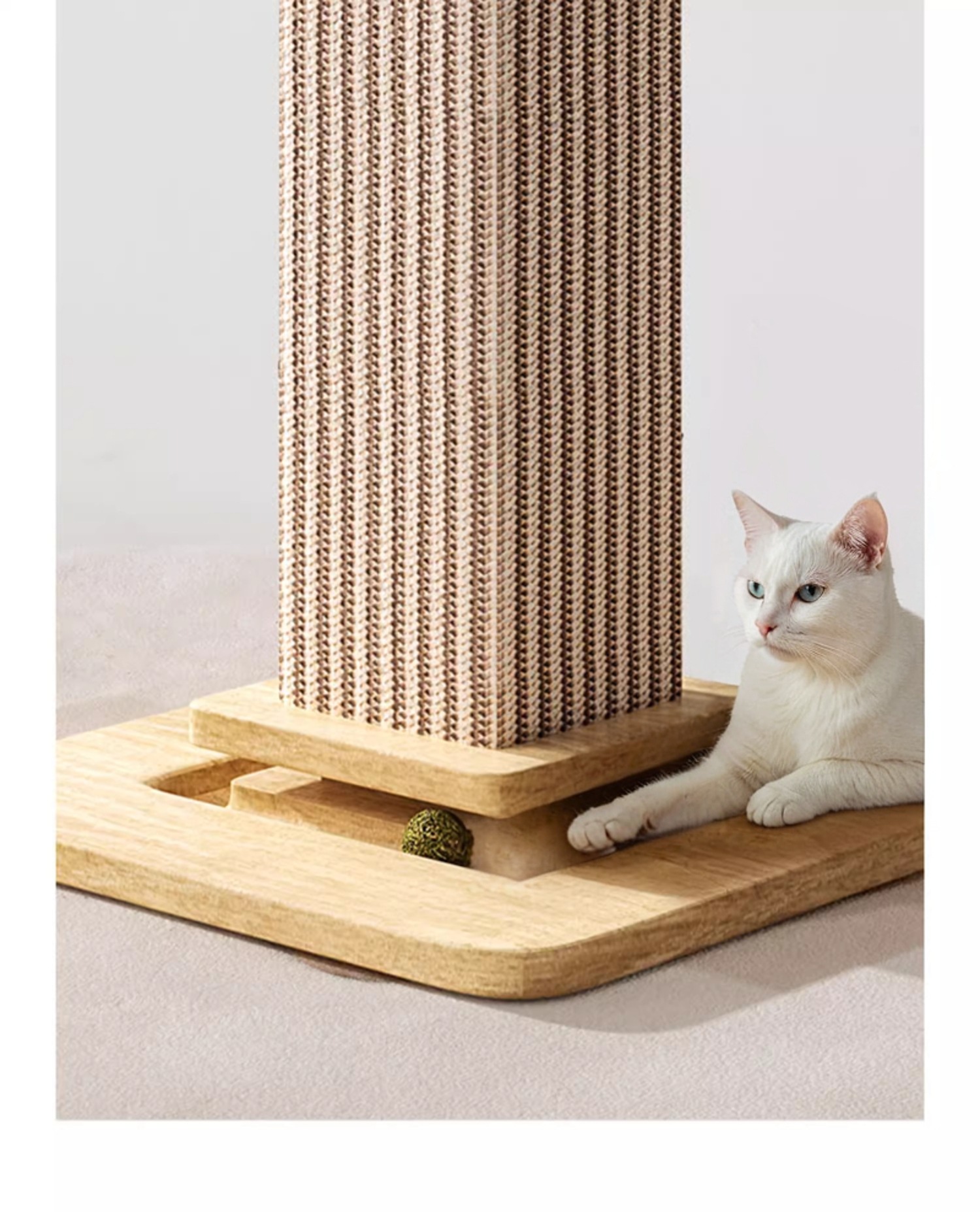 • 흰색 사이잘 고양이 긁는 기둥 - 단단한 나무 모델 [스크래치 방지, 내마모성 및 부스러기 방지]