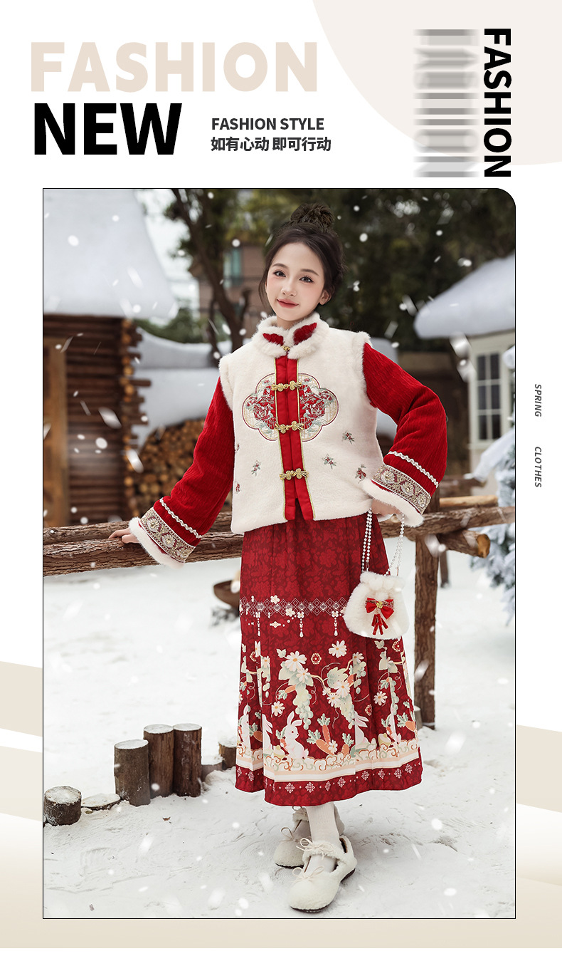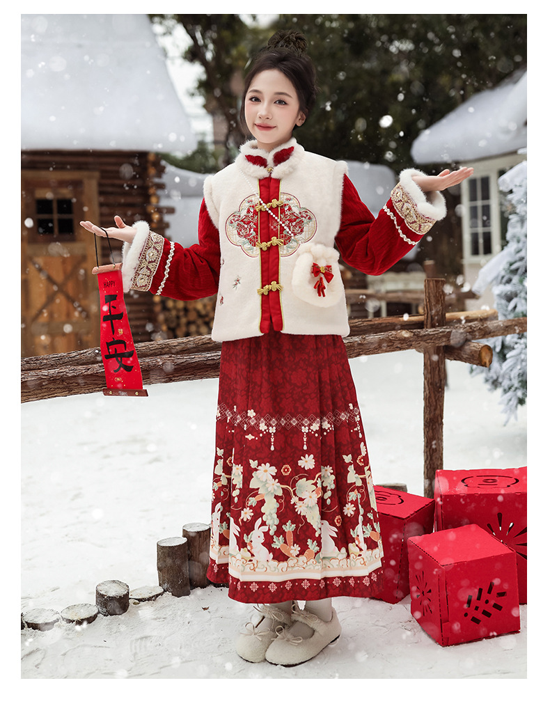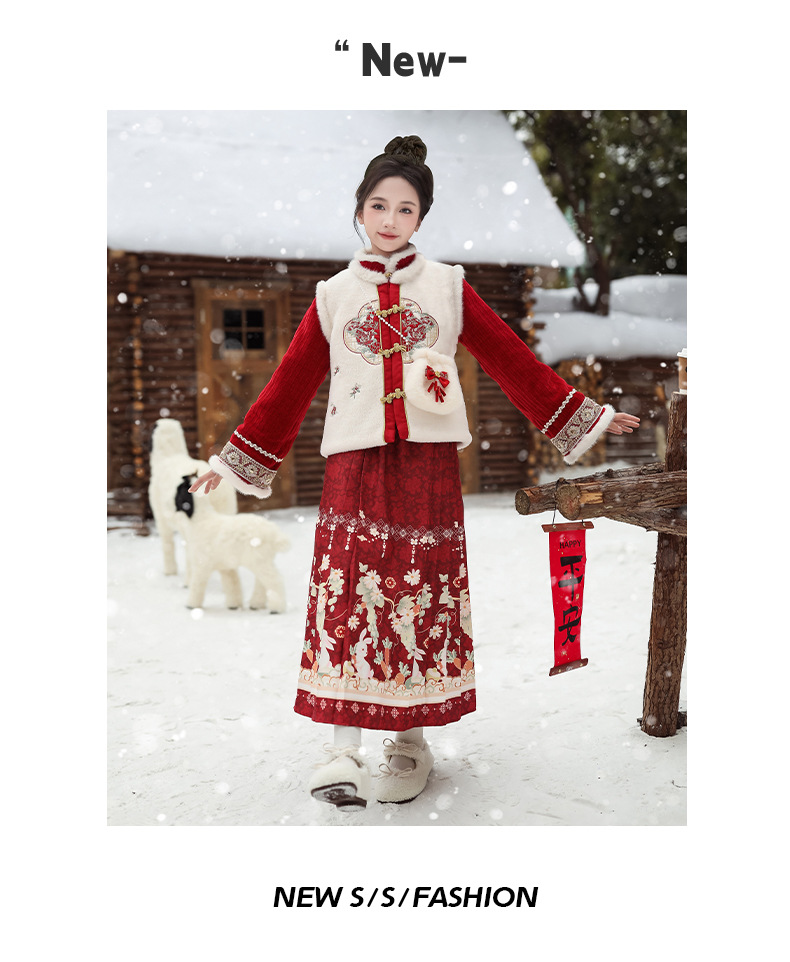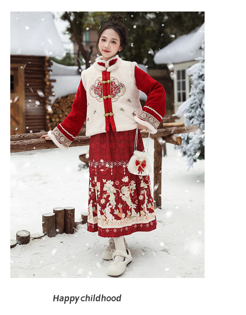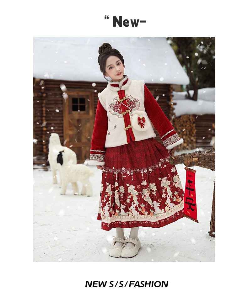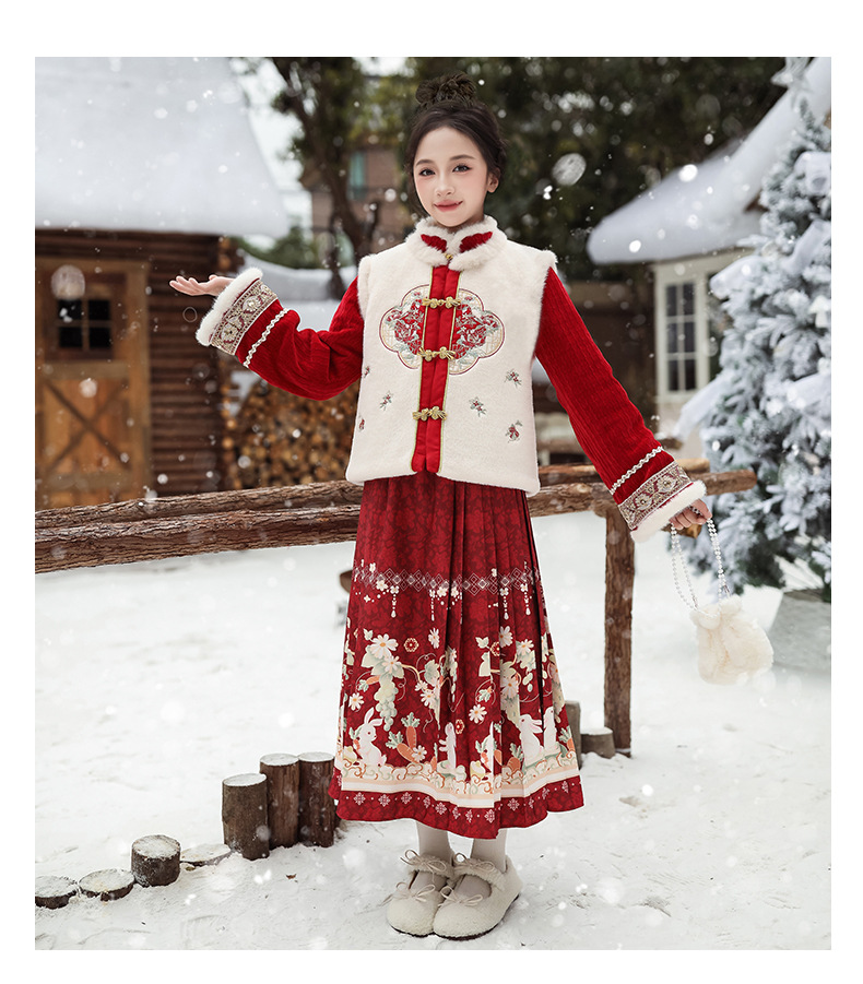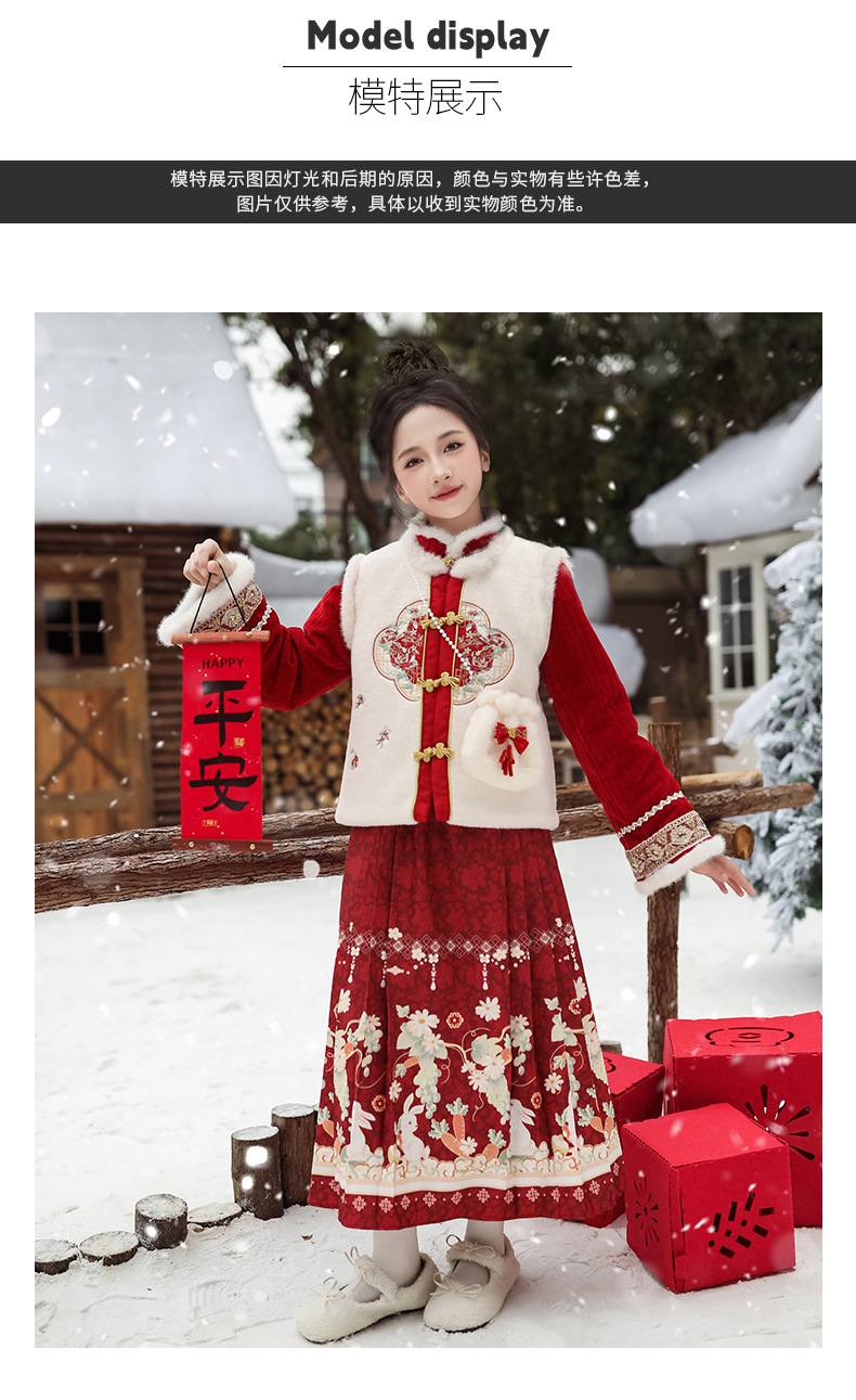 소녀 한푸 말 얼굴 원피스 겨울 신년 옷 어린이 공주 원피스 큰 어린이 신년 옷 소녀 가을 겨울 세트