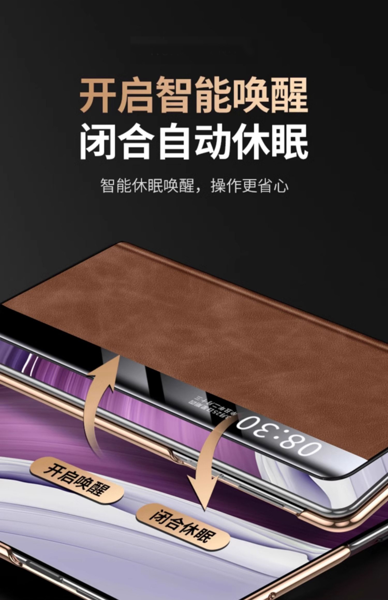 • 전기도금 플립 가죽 케이스 - 피부 친화적인 양가죽 - 브라운