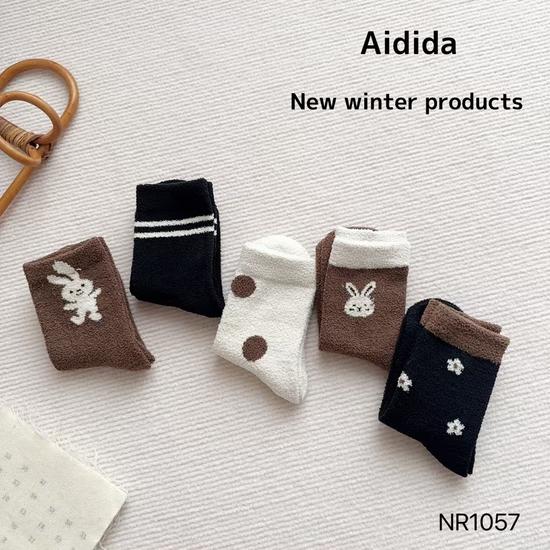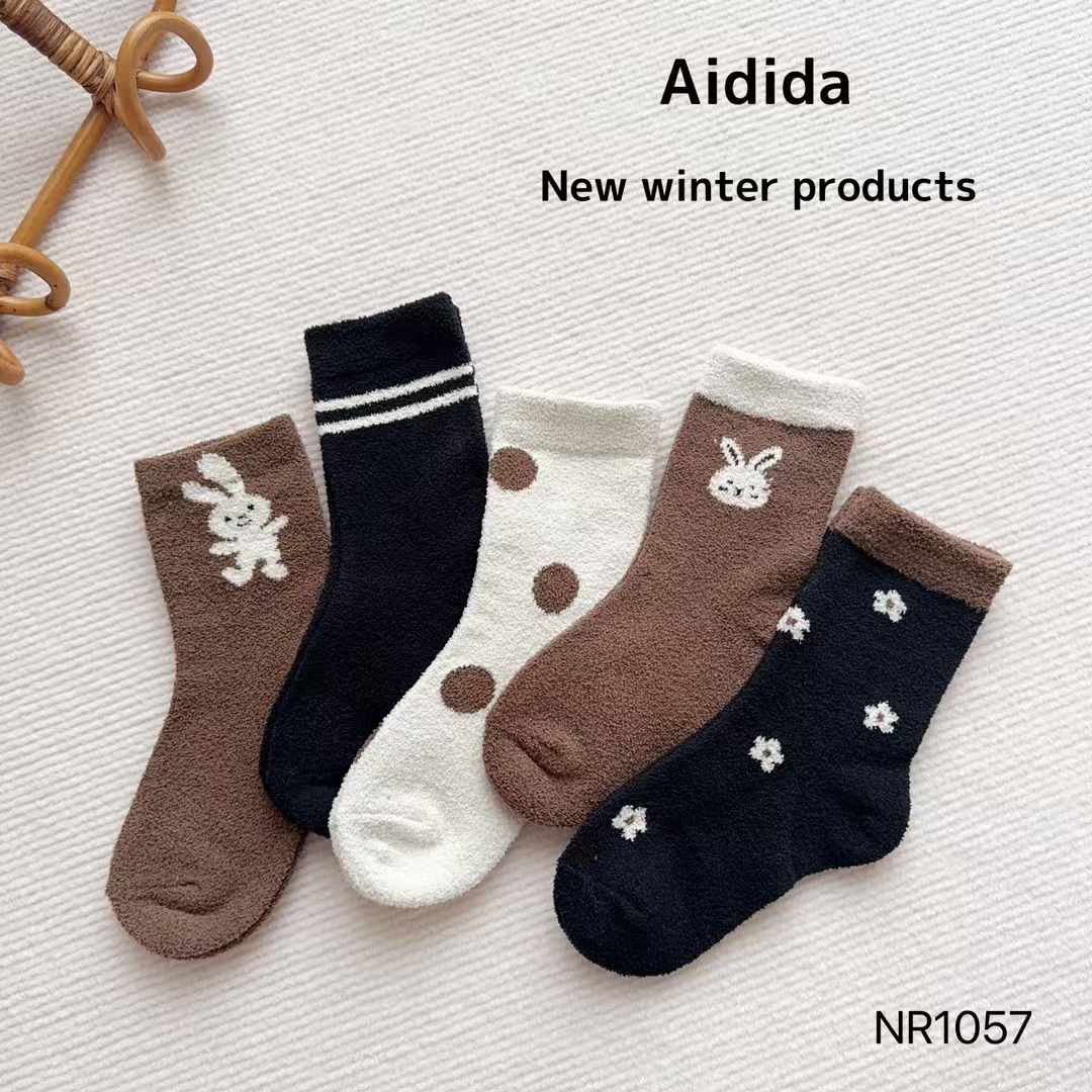 사랑의 진드기 안티 필링 어린이 양말 겨울 새로운 두꺼운 다크 브라운 여성 만화 산호 양털 1-15 세 공장 도매스토어 가기
