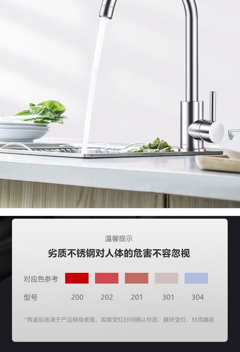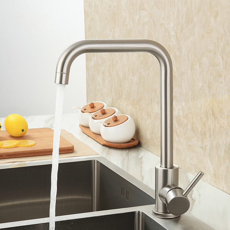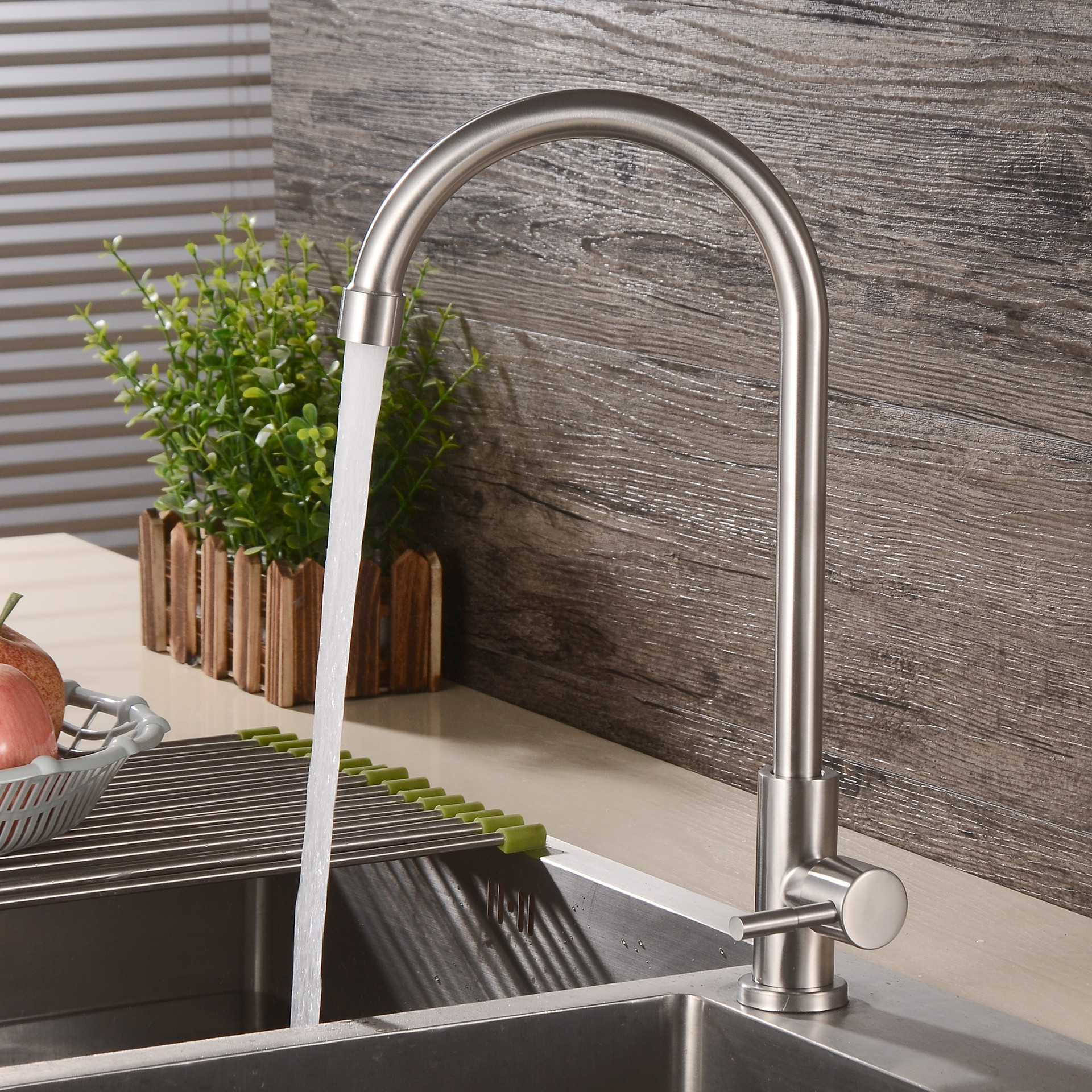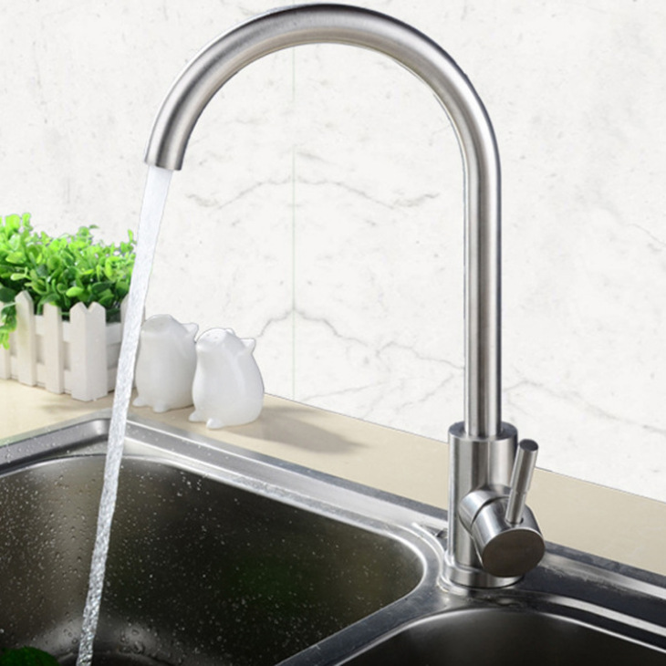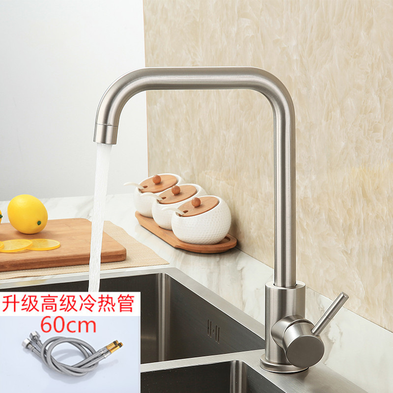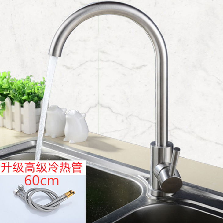 주방 스테인리스 냉온수 수도꼭지 식기 세척대 가정용 방수 설거지용 수직형 단일 냉수 360도 회전
