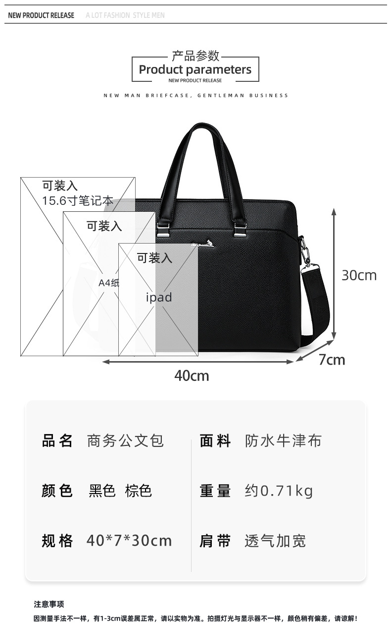 새로운 대용량 사무용 컴퓨터 가방 파일 가방 남성 방수 비즈니스 핸드백 패션 올 매치 가방 도매스토어 가기