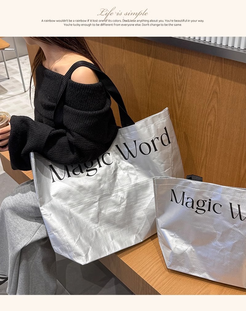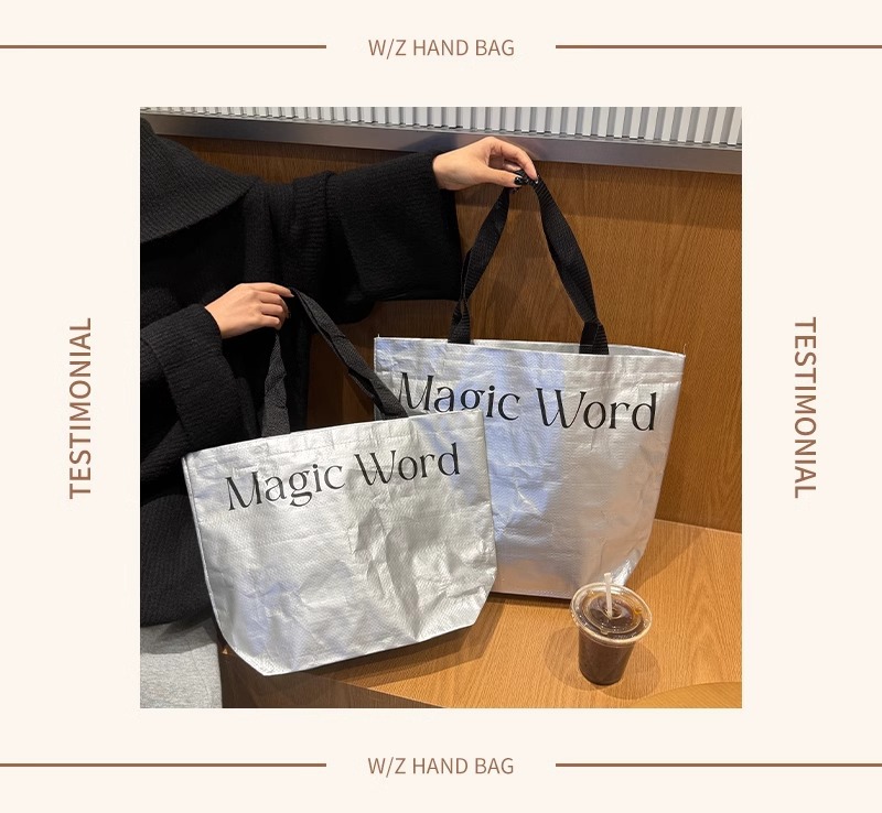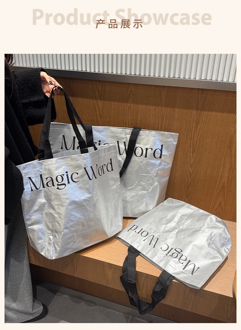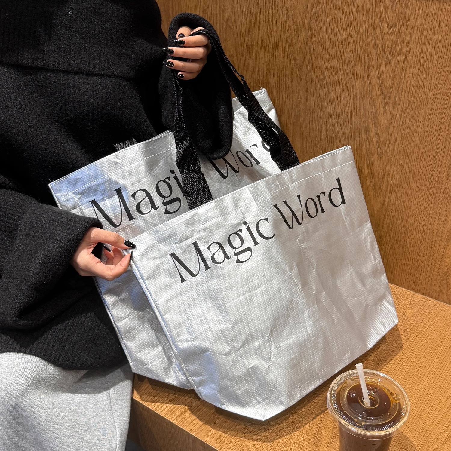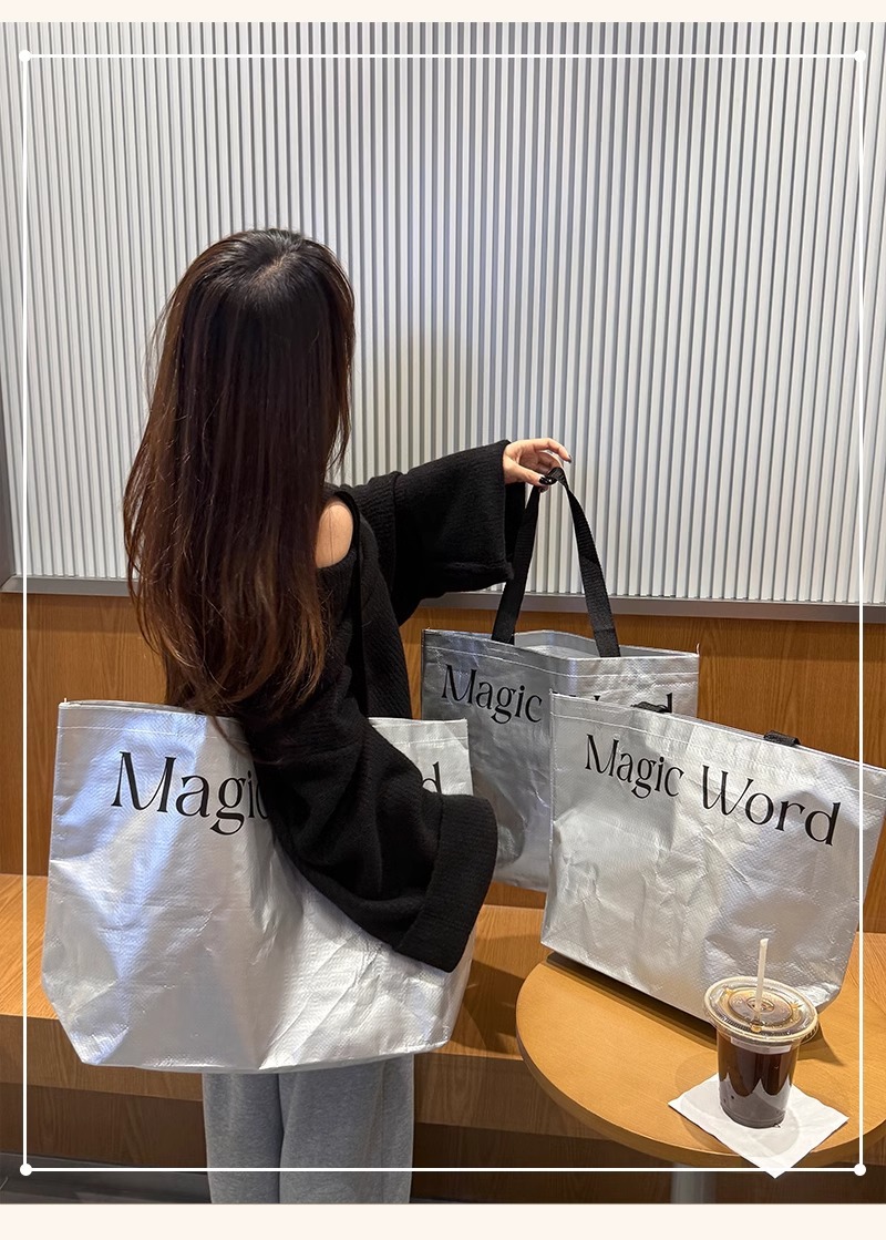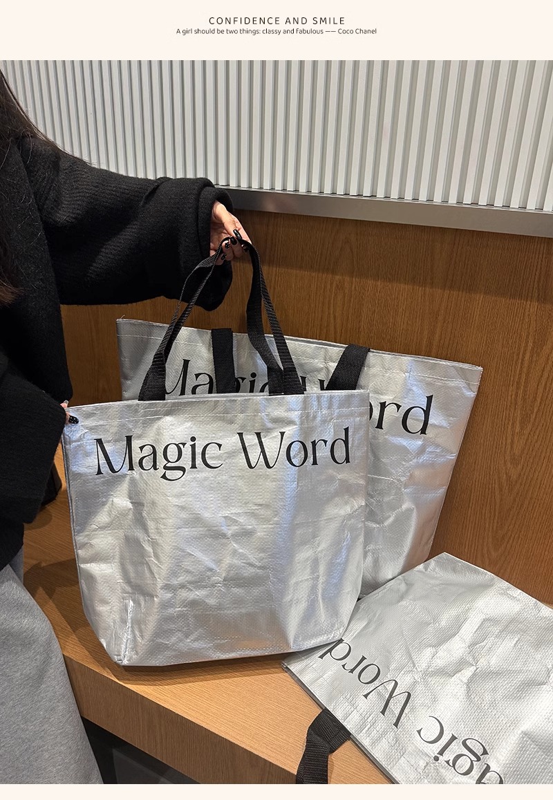 • 단어가 포함된 실버 우븐 백, 초대형 크기: 56*39*14CM, 1개