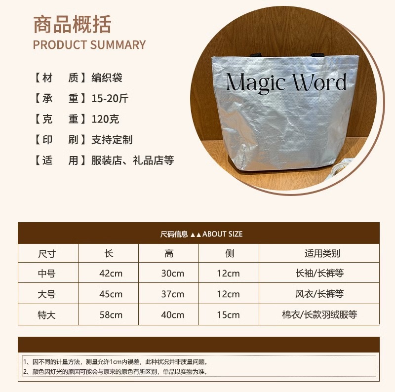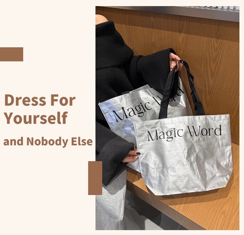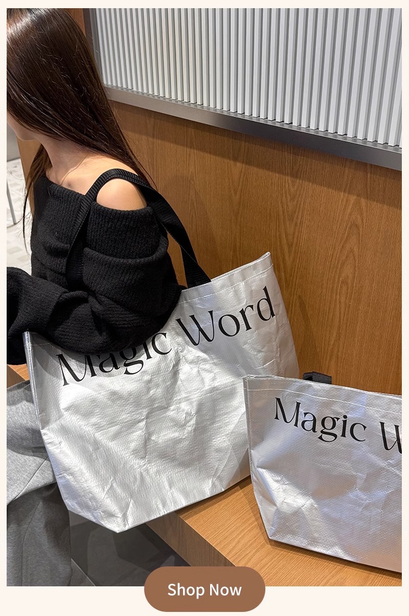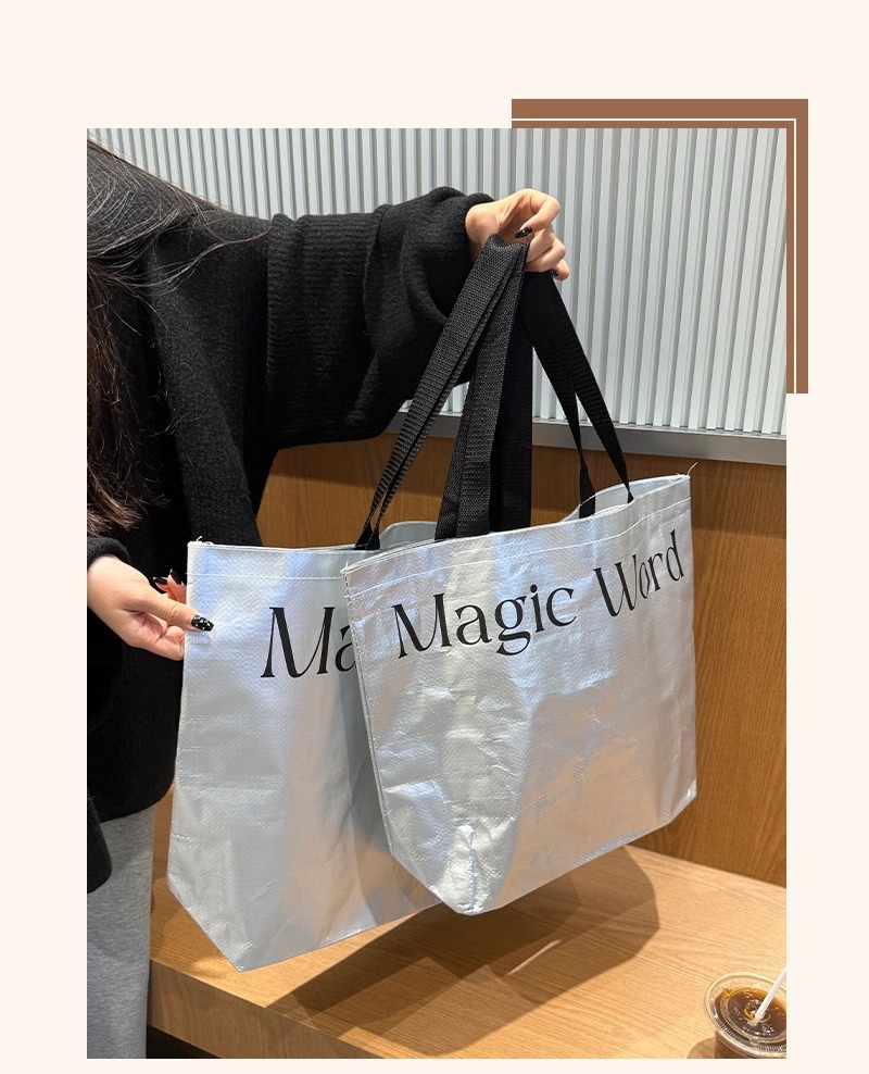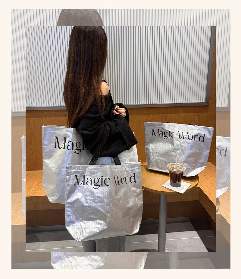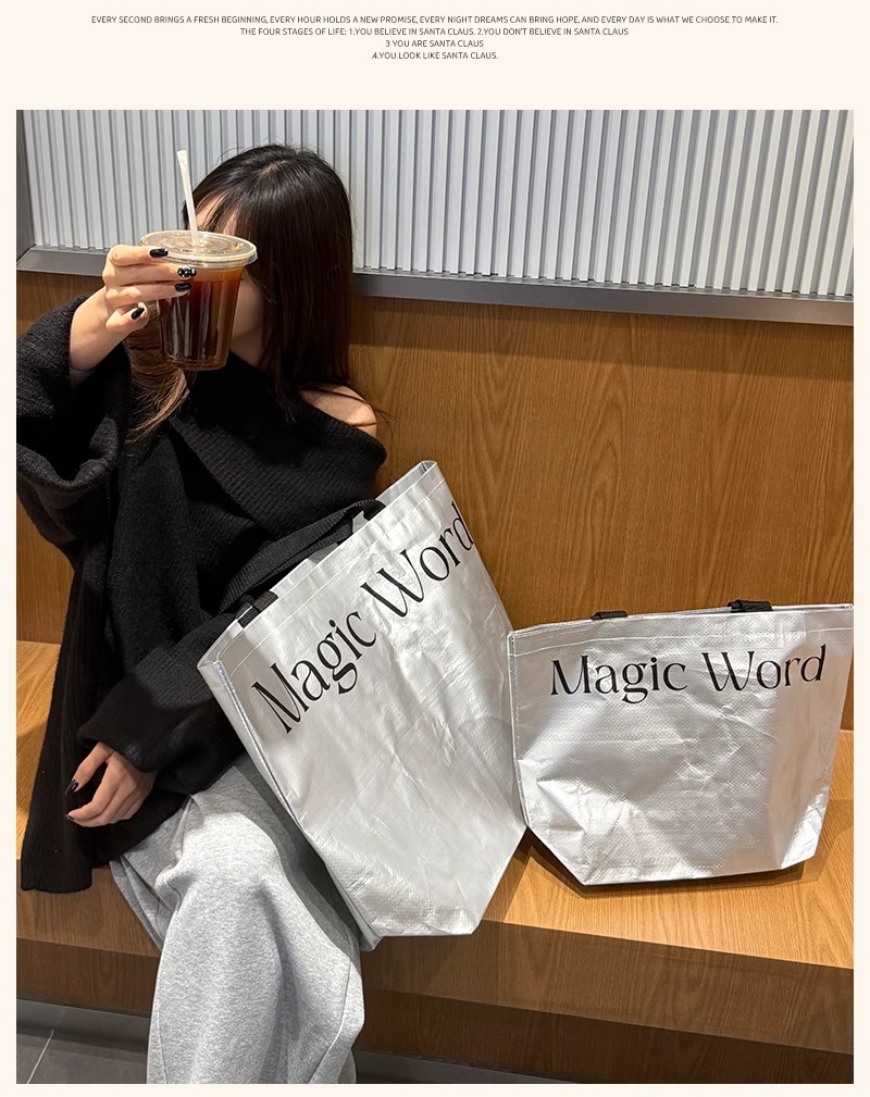 • 단어가 포함된 실버 우븐 백, 초대형 크기: 56*39*14CM, 1개