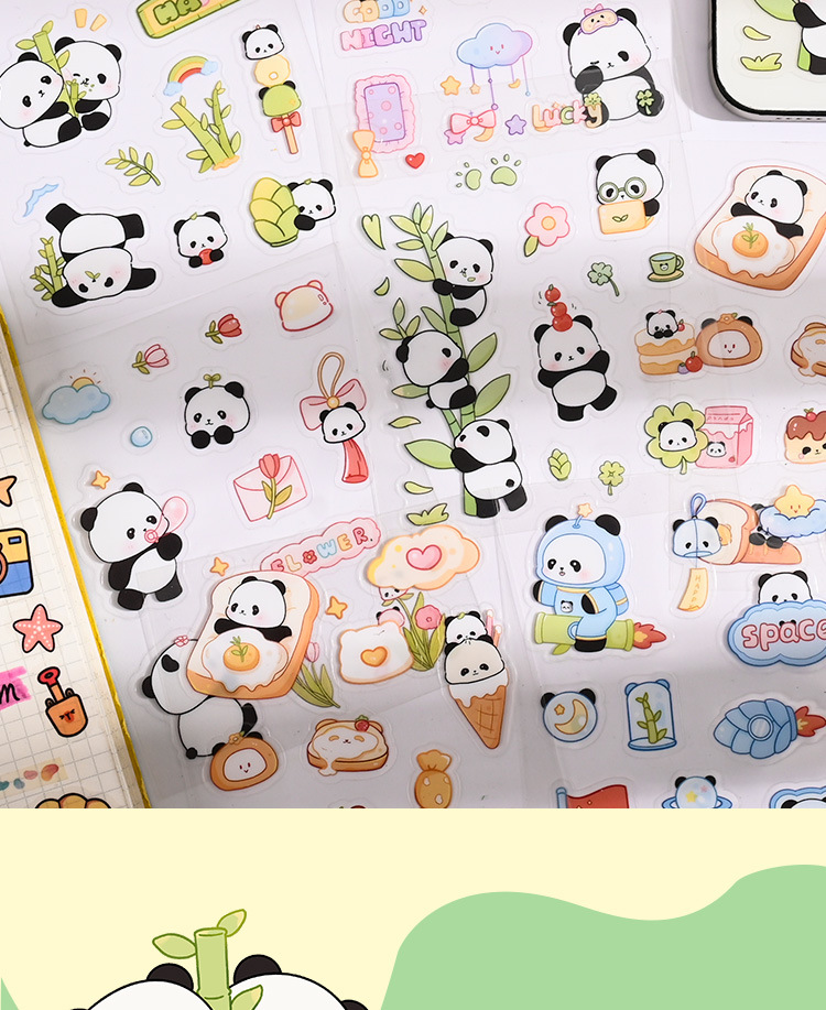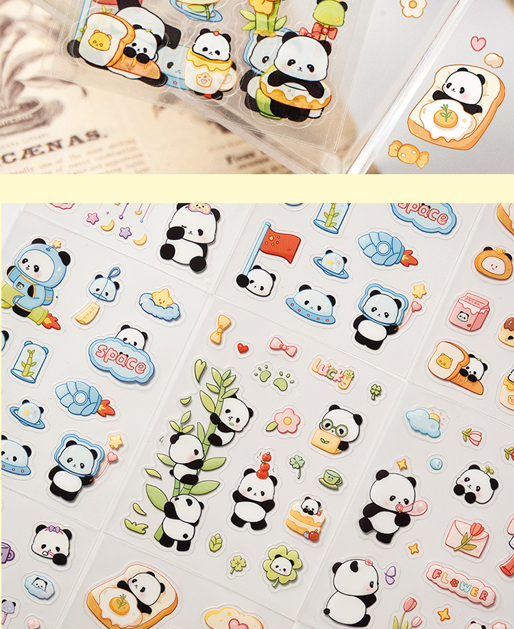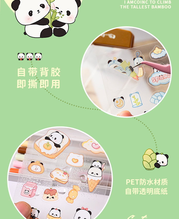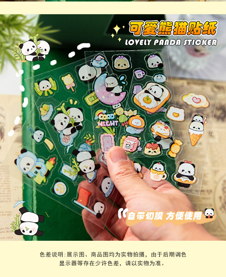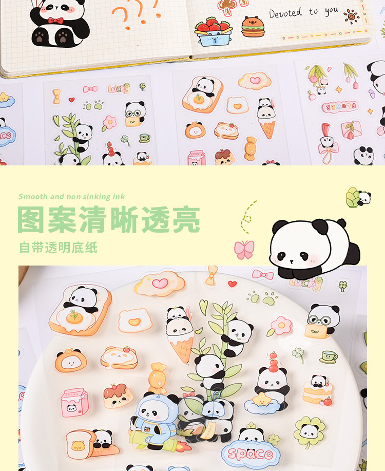 귀여운 수제 팬더 패턴 만화 애완 동물 스티커 어린이 재미 자기 접착 손 계정 스티커 방수 팬더 스티커