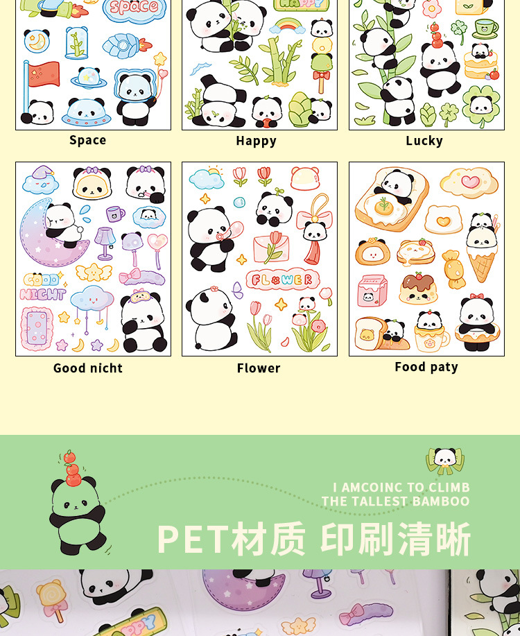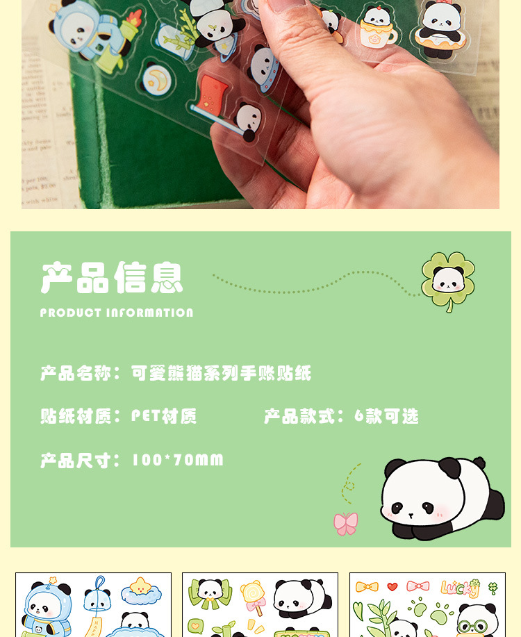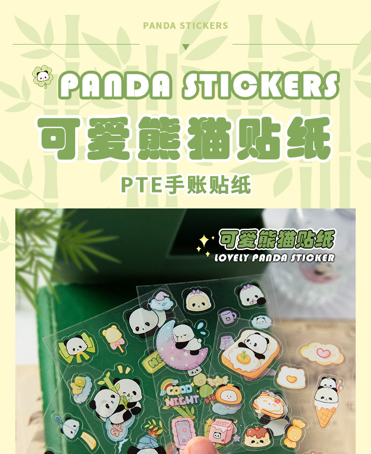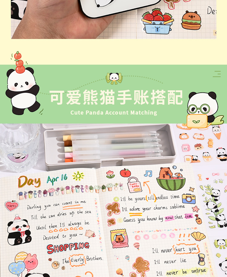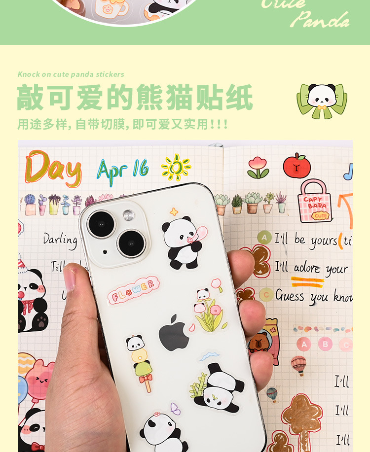 귀여운 수제 팬더 패턴 만화 애완 동물 스티커 어린이 재미 자기 접착 손 계정 스티커 방수 팬더 스티커