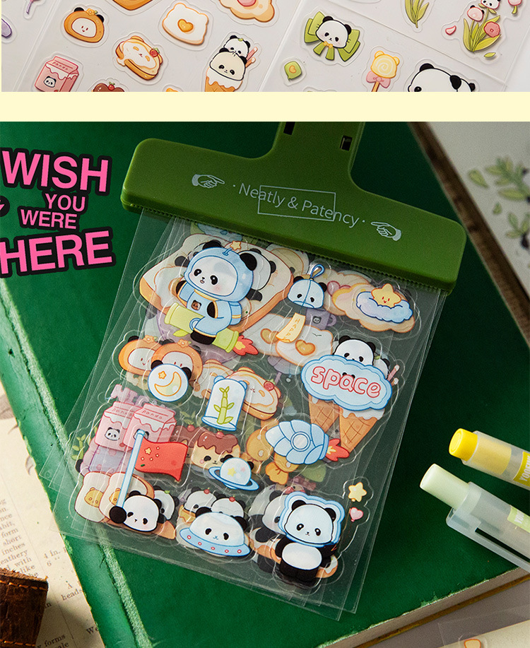 귀여운 수제 팬더 패턴 만화 애완 동물 스티커 어린이 재미 자기 접착 손 계정 스티커 방수 팬더 스티커스토어 가기