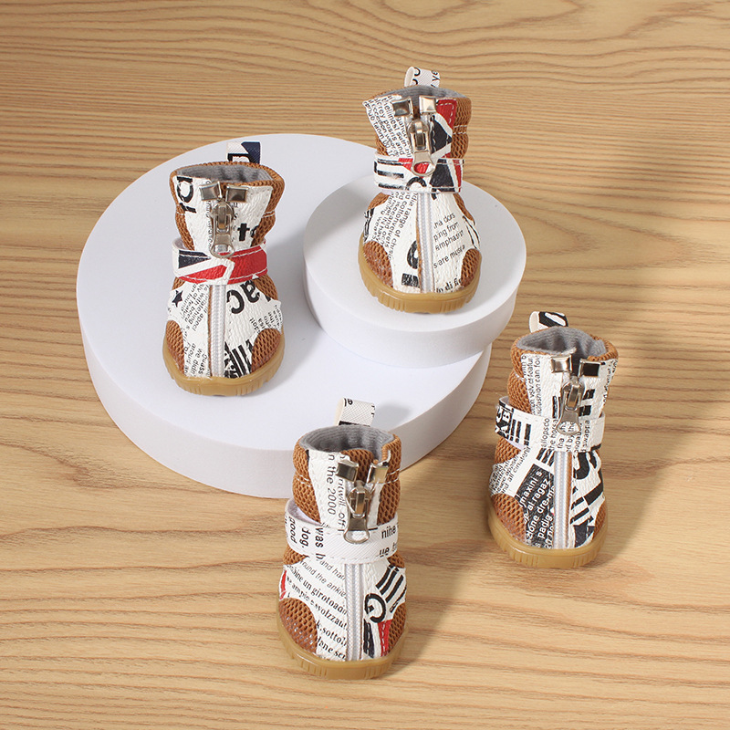 국경 간 폭발 애완 동물 신발 개 샌들 봄과 여름 통기성 중소 개 내마모성 쇠고기 힘줄 밑창이 발 덮개에서 떨어지지 않습니다.스토어 가기