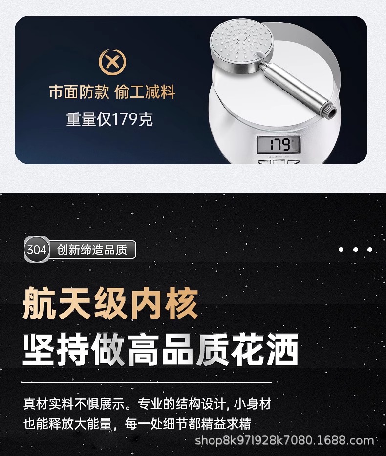 • 브러시드 실버 [두꺼운 304 스테인레스 스틸] 3단 강력한 슈퍼차저 샤워 헤드
