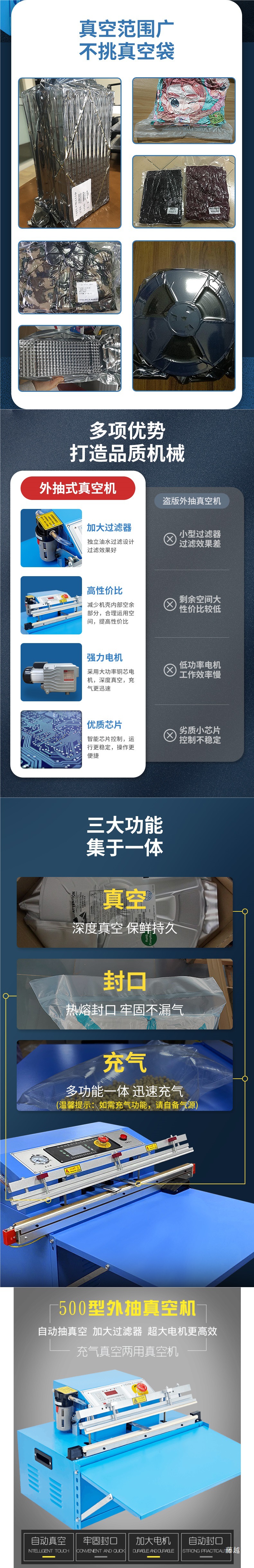 500 모델 외부 펌핑 진공 포장기 팽창 밀봉 기계 상업용 전자 식품 자동 진공 기계