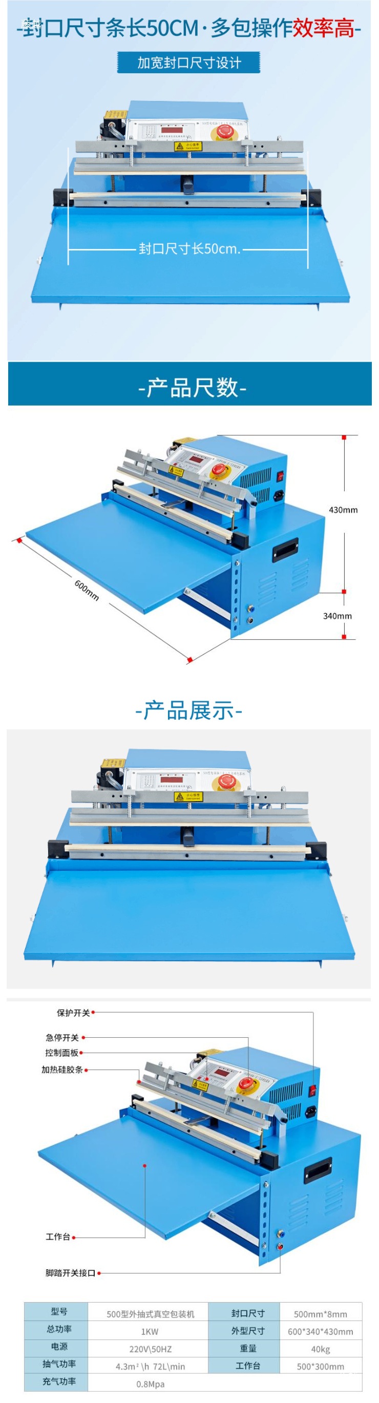 • 외부 펌핑형 500 진공 포장기 시트형