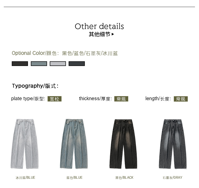 오래된 세탁 청바지 남성용 봄 새로운 분할 스티칭 디자인 Scimitar 바지 레트로 느슨한 프로필 긴 바지