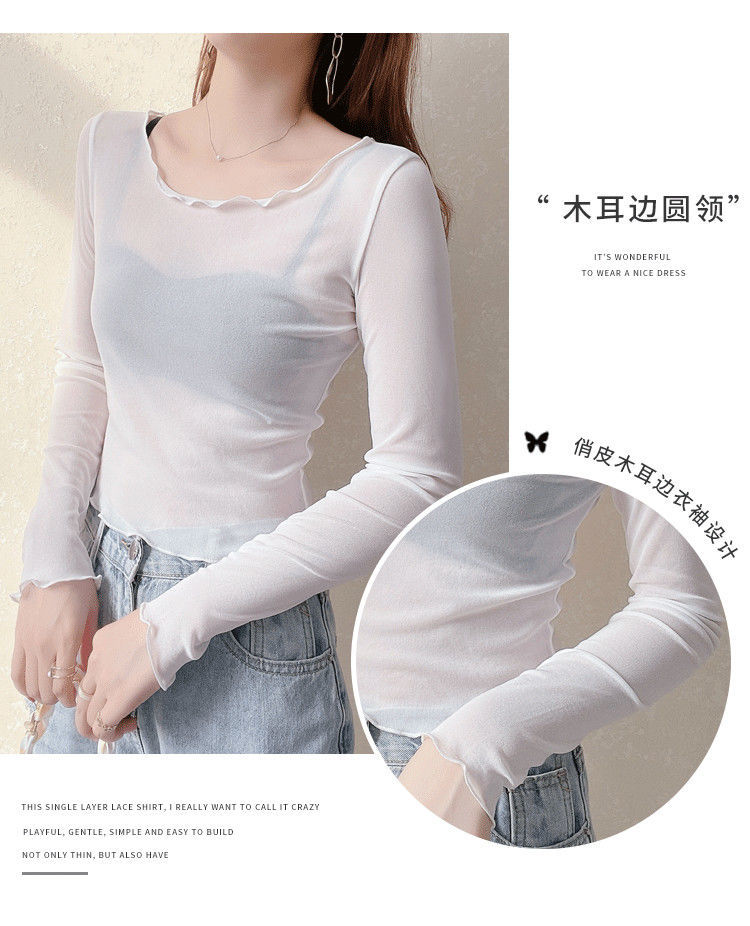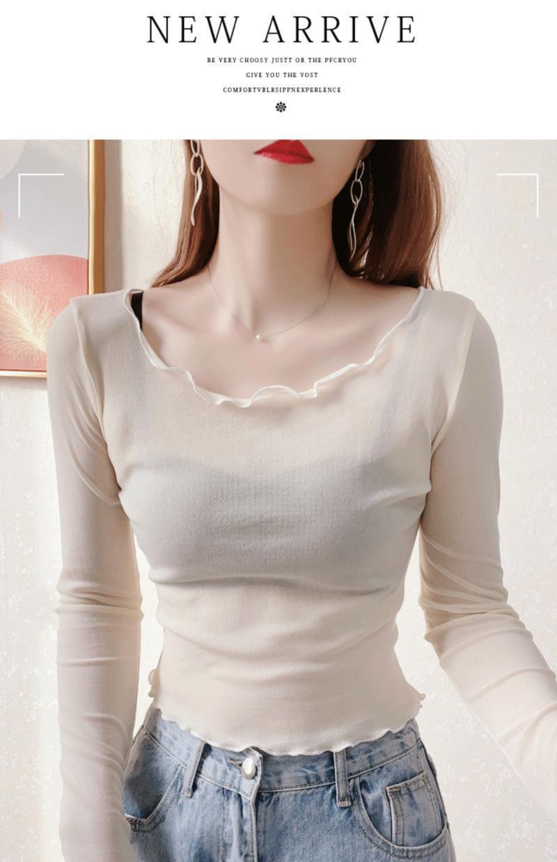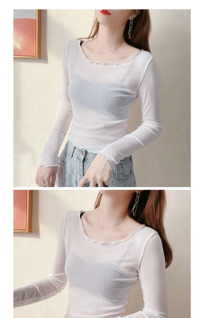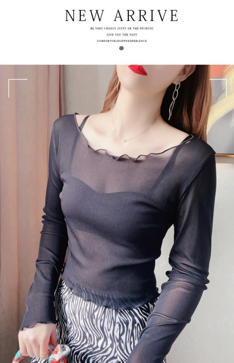 2024 새로운 도착 자른 메쉬베이스 셔츠 여성용 대형 라운드 넥 얇은 슬립 스커트 레이스 탑