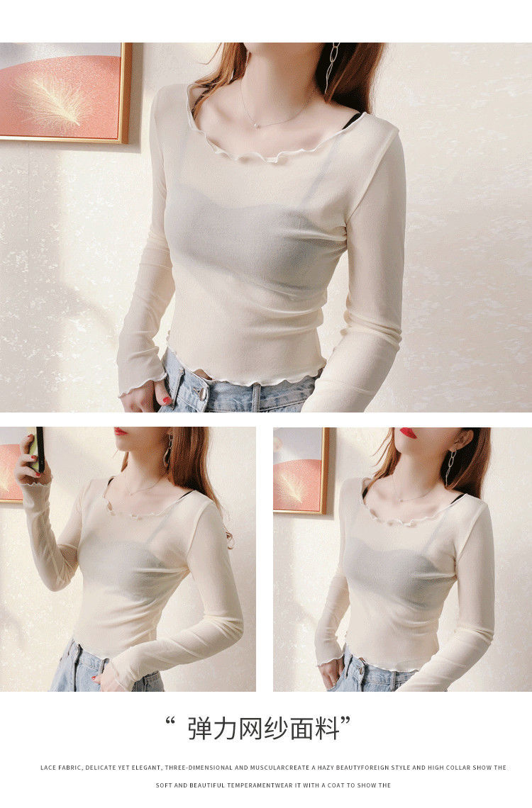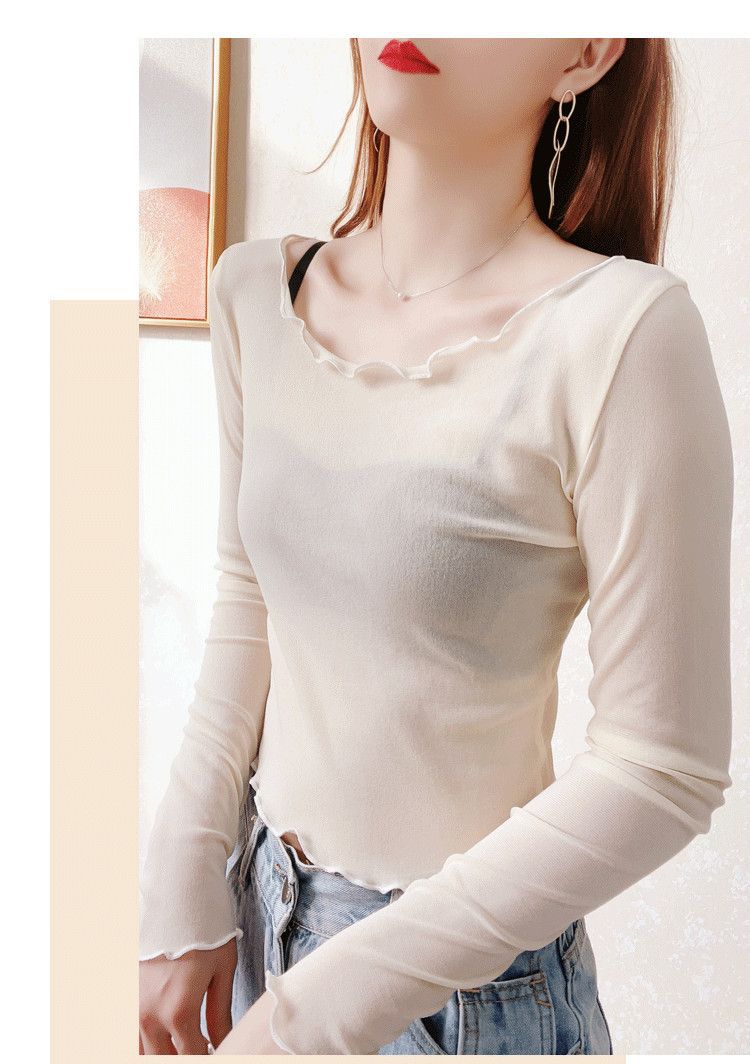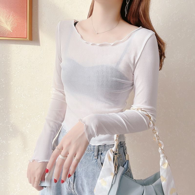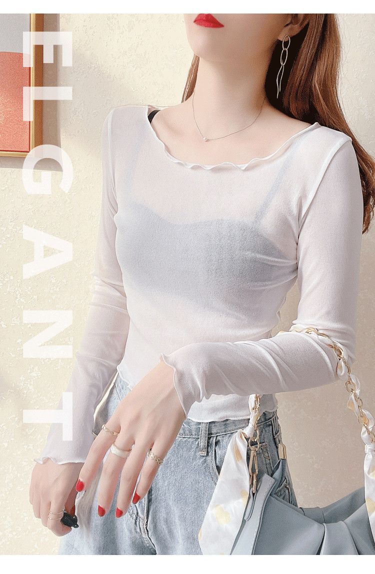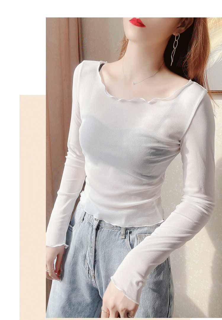 2024 새로운 도착 자른 메쉬베이스 셔츠 여성용 대형 라운드 넥 얇은 슬립 스커트 레이스 탑