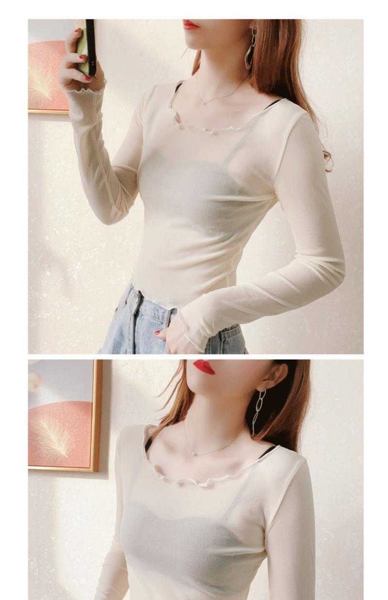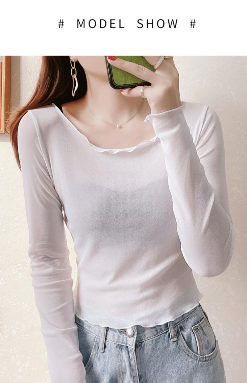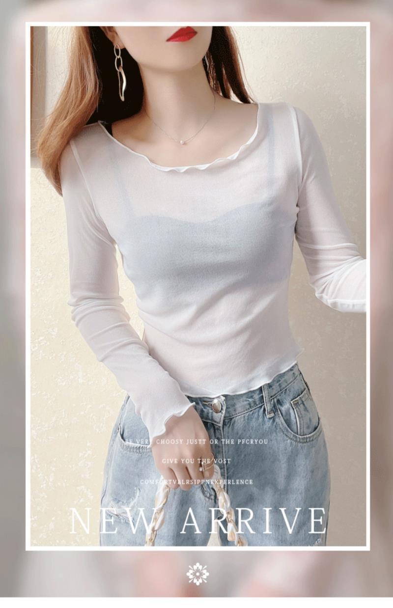 2024 새로운 도착 자른 메쉬베이스 셔츠 여성용 대형 라운드 넥 얇은 슬립 스커트 레이스 탑스토어 가기