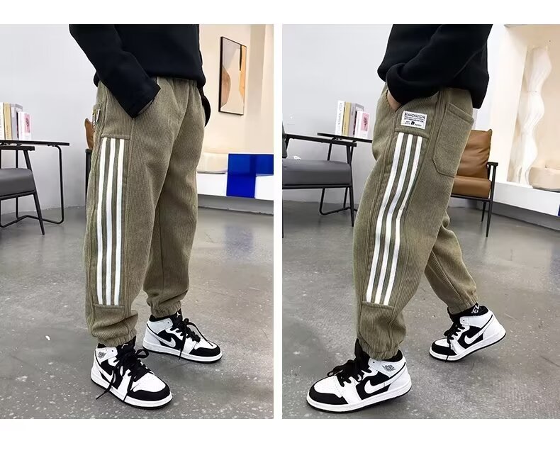 기모 코듀로이 두꺼운 남성용 바지 가을과 겨울 트렌디 브랜드 땀 바지 느슨한 바지 번들 다리 캐주얼 바지 트렌디 바지