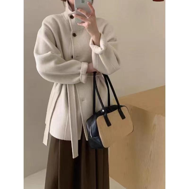2024 새로운 헵번 스타일 양면 양모 코트 여성 한국 스타일 칼리지 스타일 슬림 룩 울 코트스토어 가기